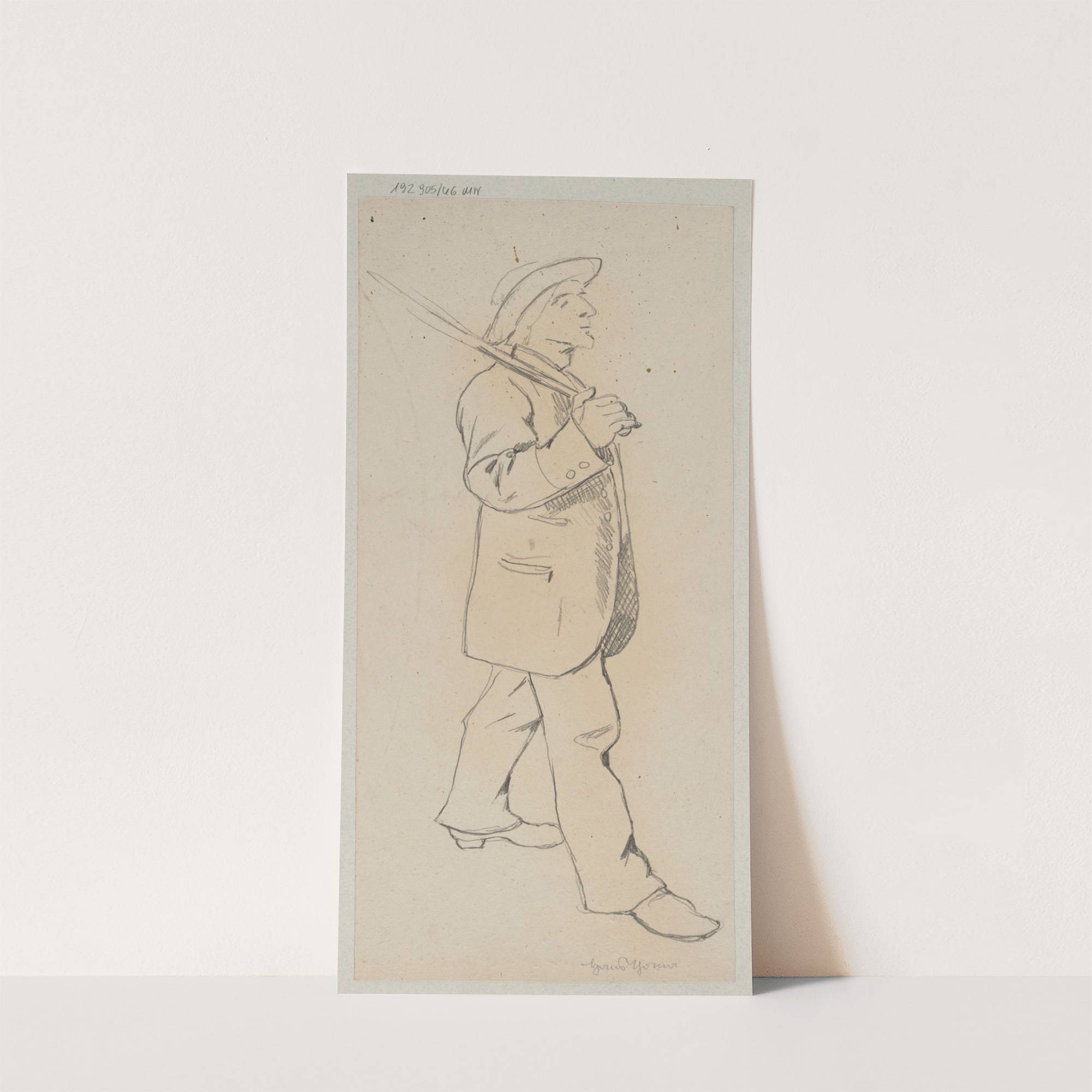 Walking Man in a Hat and Long Jacket, with a Stick over the Shoulder (1886)