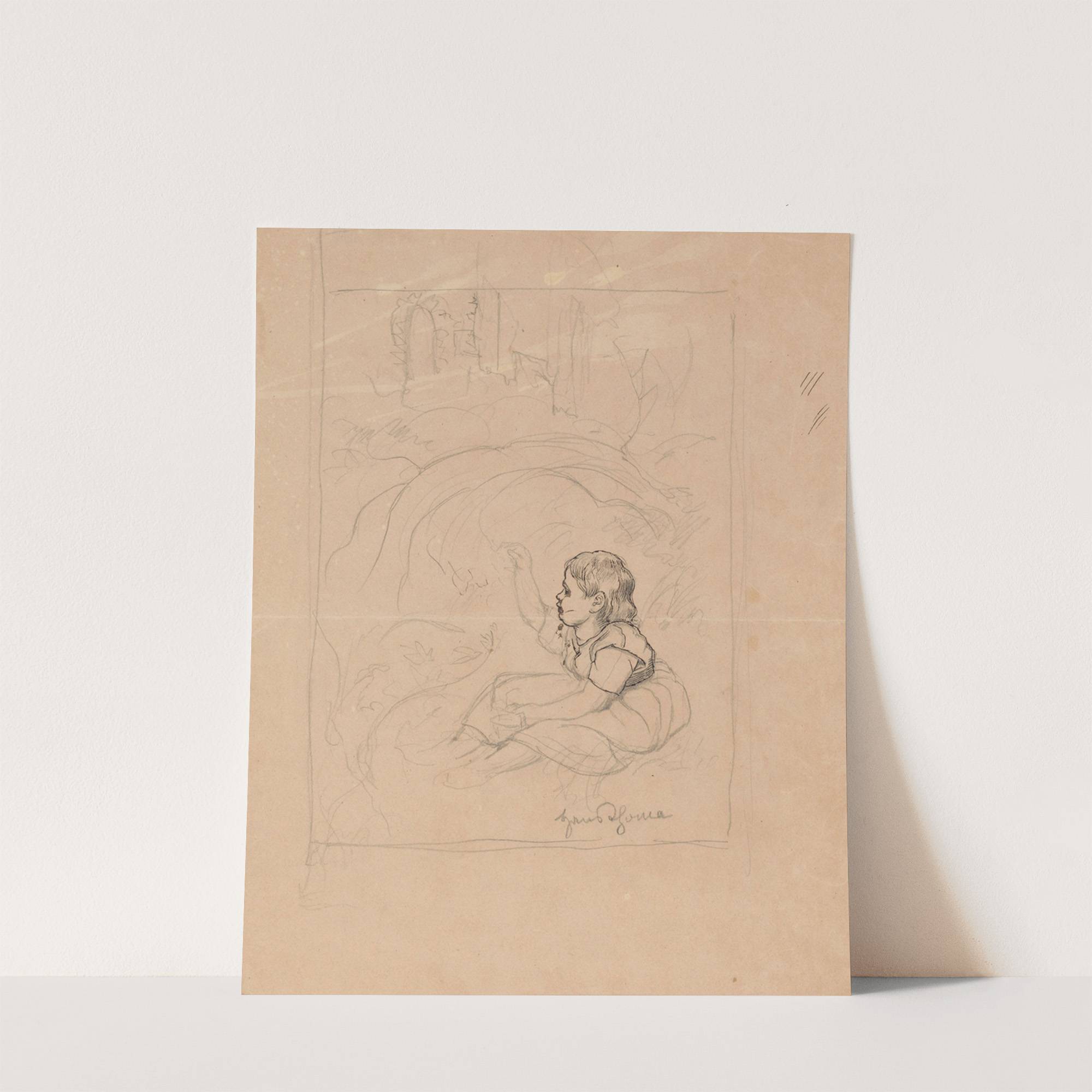 Young Girl Sitting Under a Bush (1900) by Hans Thoma - Wall Art Print