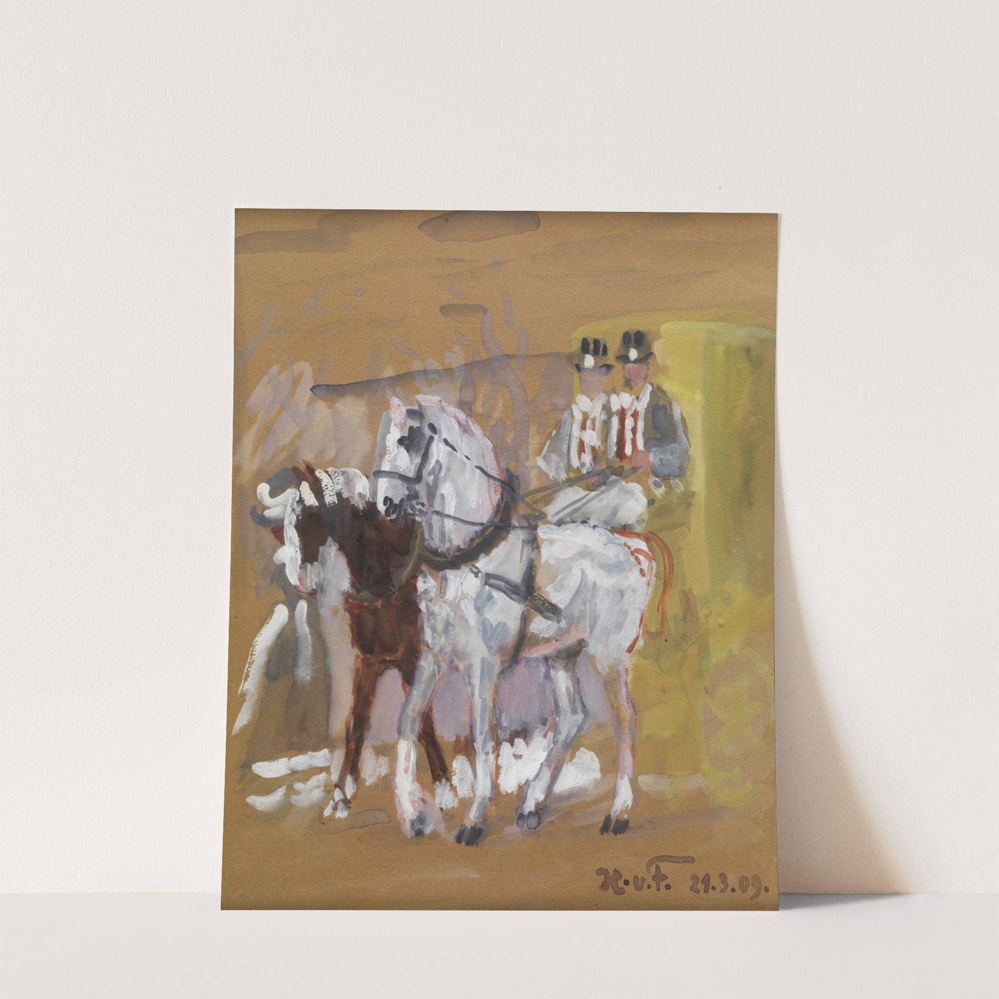 Pferdegespann vor einer Kutsche mit zwei Kutschenlenkern mit Zylinder (1909) by Hans von Faber du Faur - Wall Art Print
