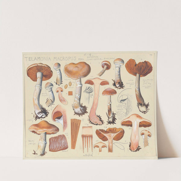 Discover the intricate beauty of Telamonia macropus mushrooms with this meticulously detailed art print by artist Hans Walty. This vibrant illustration showcases a variety of Telamonia macropus specimens, each depicted with remarkable attention to detail and realistic coloration. The mushrooms...