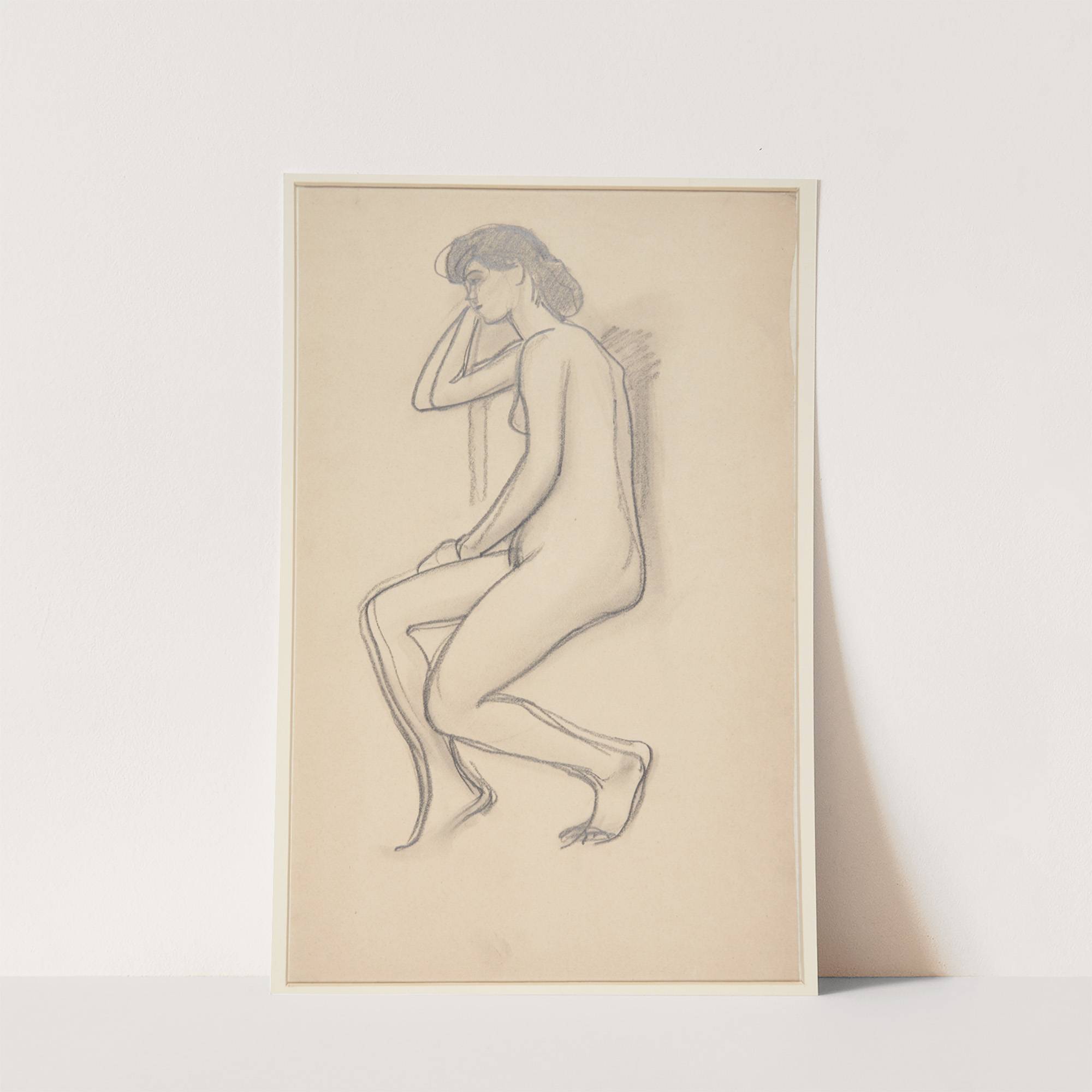 Siddende kvindelig model, set fra siden by Harald Giersing - Wall Art Print