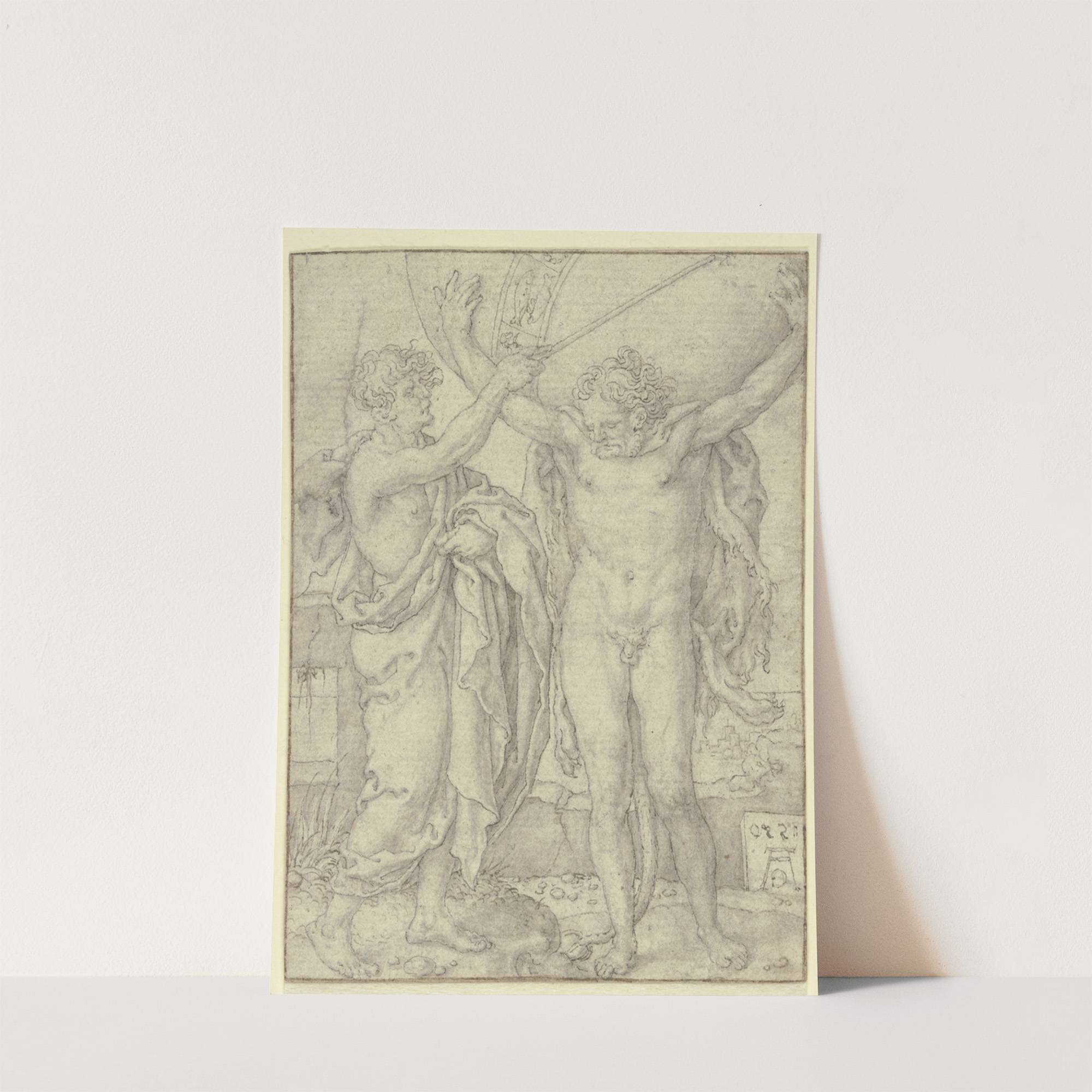 Herkules hilft Atlas die Weltkugel tragen by Heinrich Aldegrever - Wall Art Print