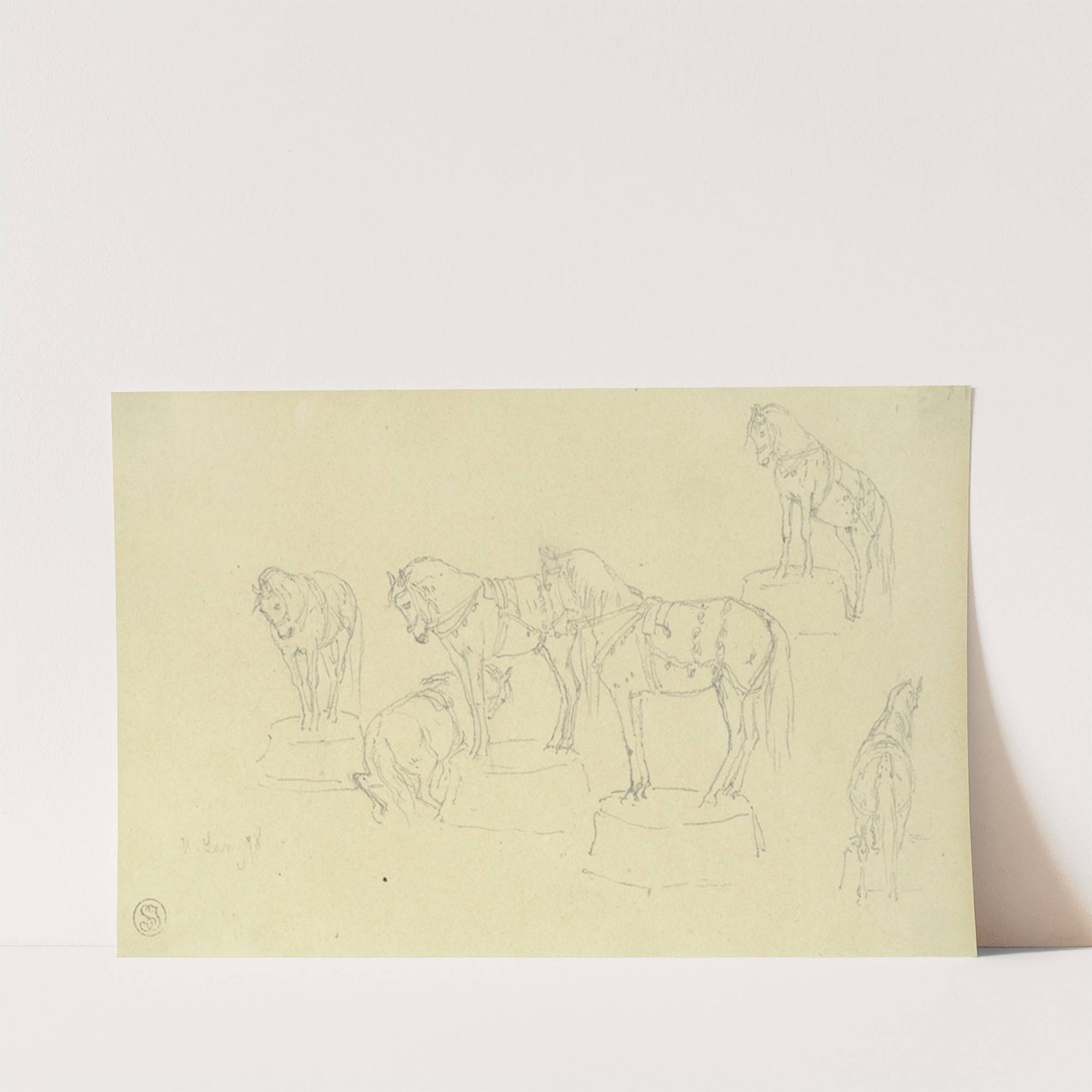 Circuspferde, auf Tonnen balancierend by Heinrich Lang - Wall Art Print
