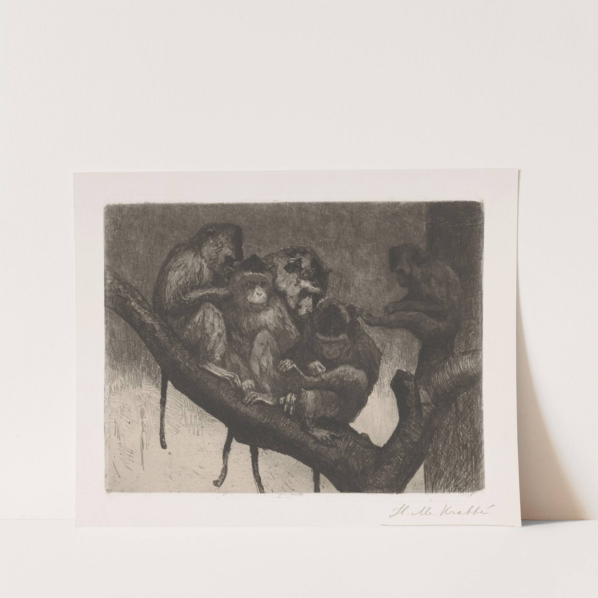 Five monkeys in a tree by Heinrich M. Krabbé - Wall Art Print