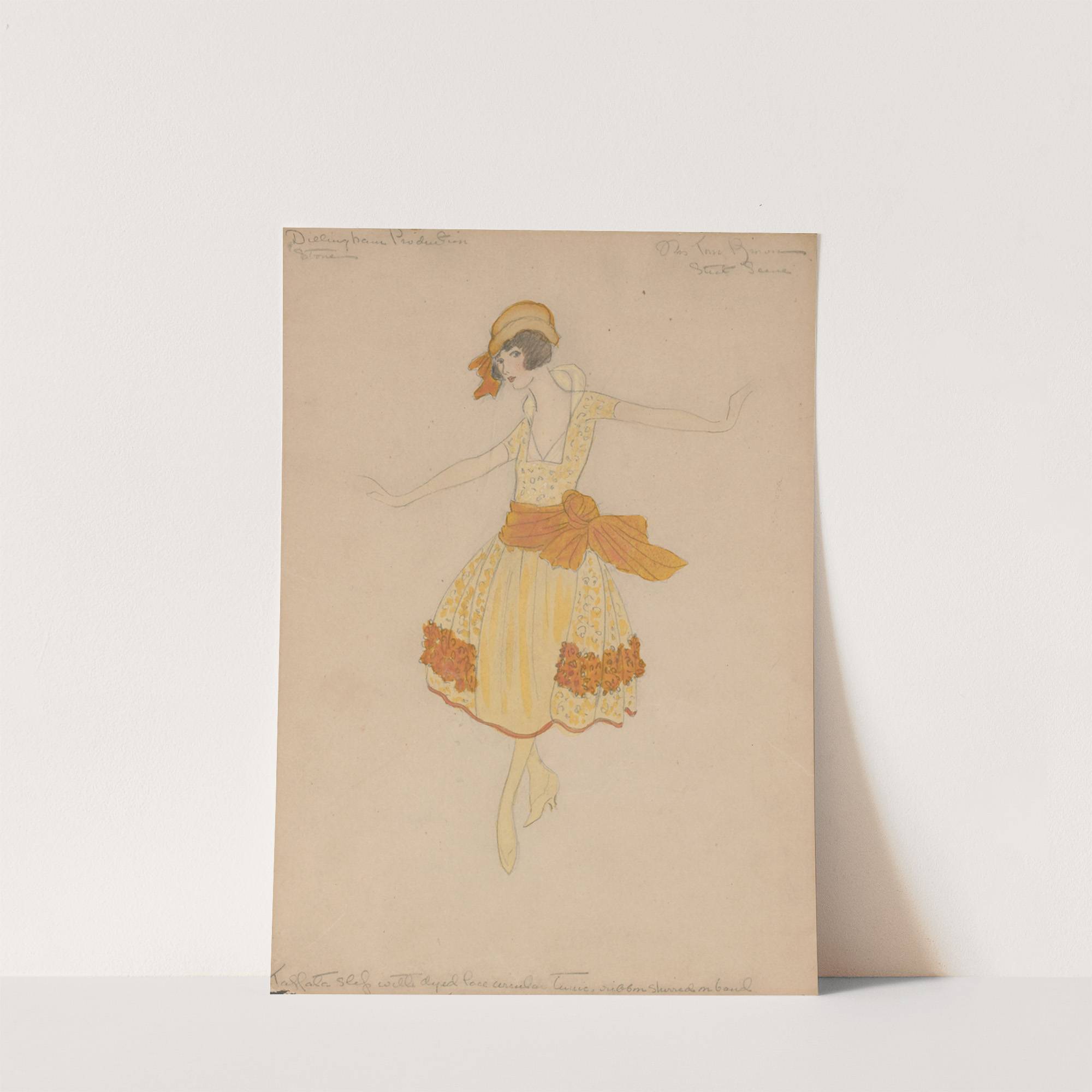 This elegant art print features a delicate watercolor illustration of a young woman captured in mid-motion. The artist, Helen Marguerite O'Kane, has imbued the piece with a sense of grace and vintage charm. The subject wears a soft yellow dress...