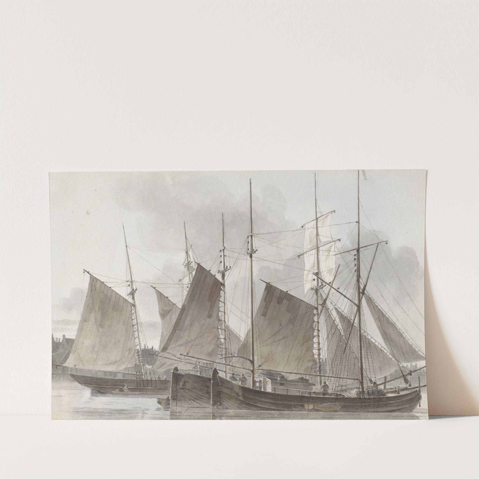 Zeilschepen aangemeerd voor een stad by Hendrik Abraham Klinkhamer - Wall Art Print