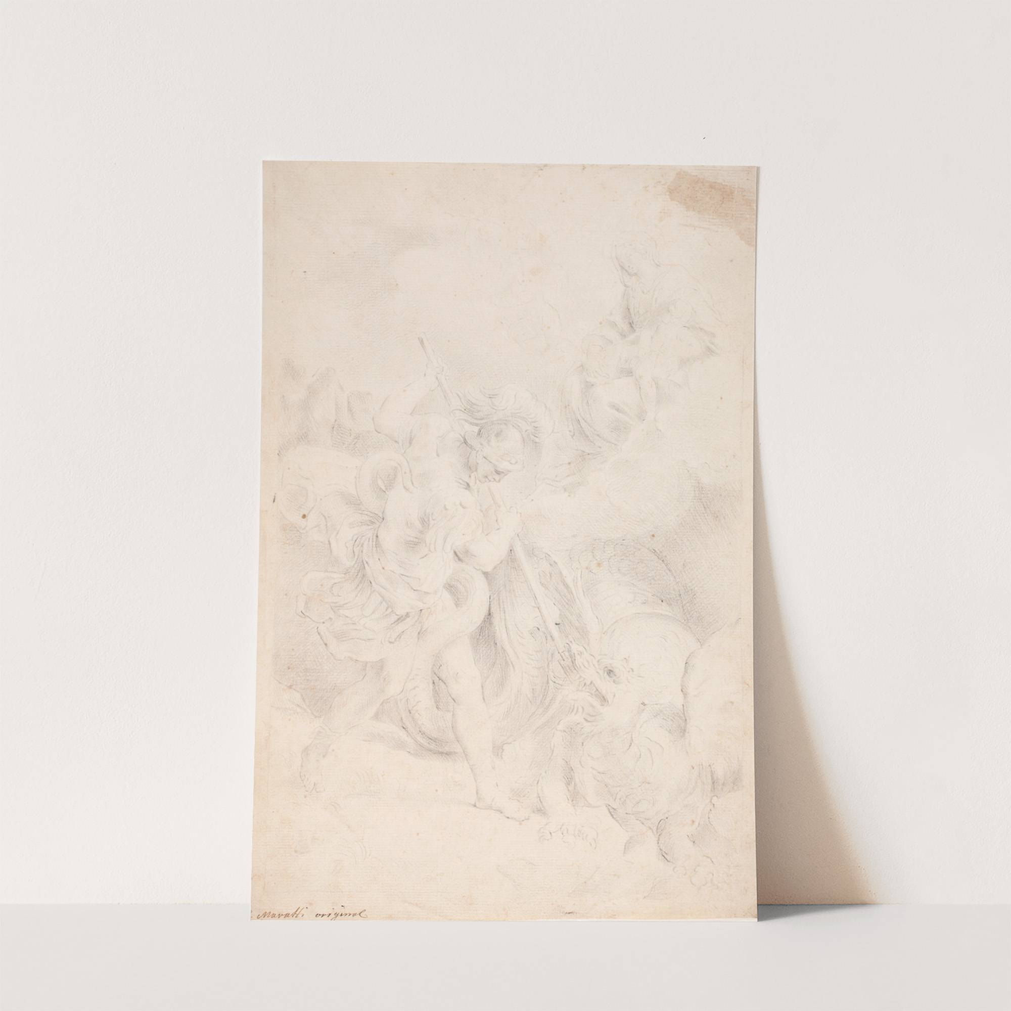 Den hellige Georg kæmper med dragen by Hendrik Krock - Wall Art Print