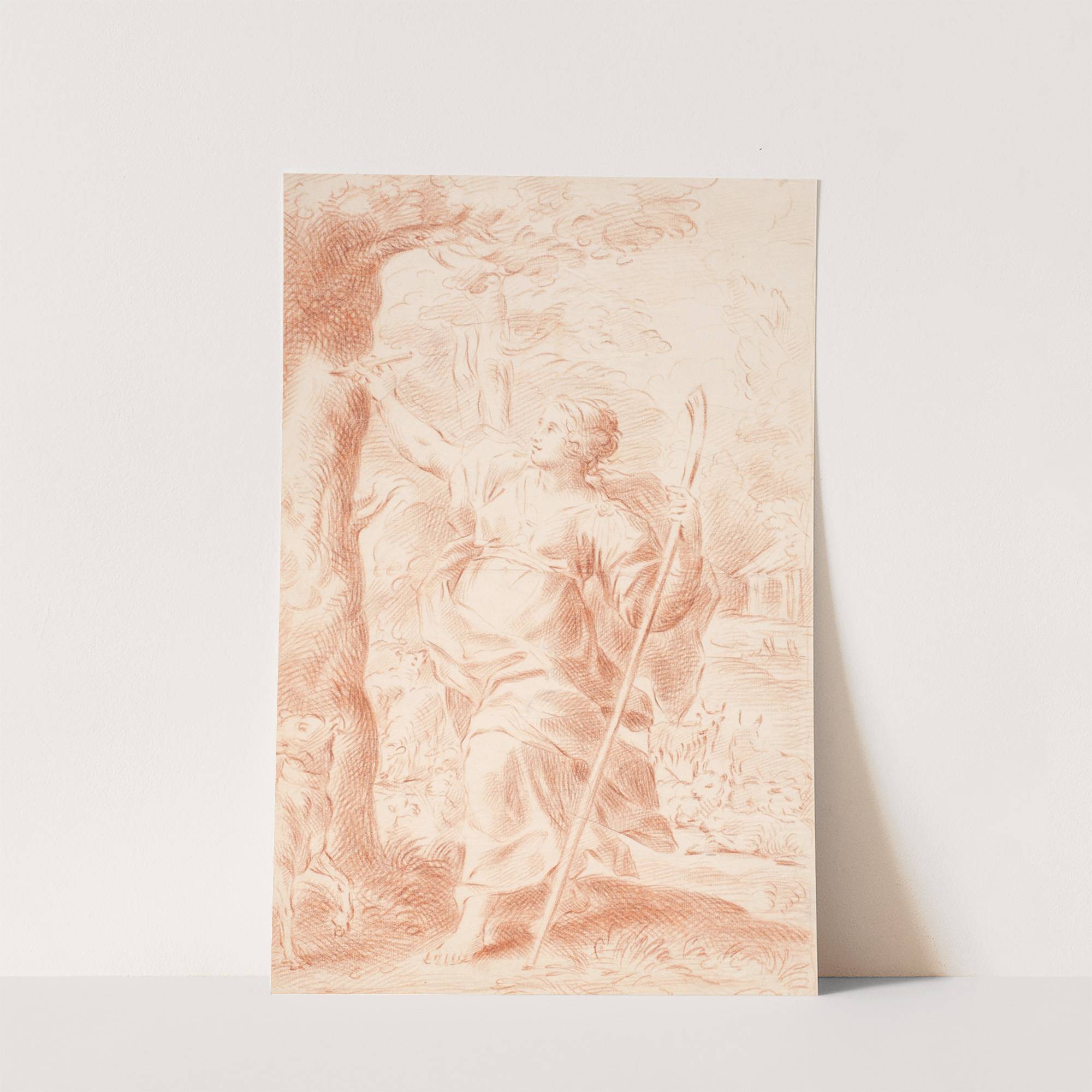 Hyrdinde, der ridser i en træstamme by Hendrik Krock - Wall Art Print