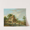 A watermill with farmyard animals and peasants, a landscape beyond by Hendrik Meijer - Wall Art Print