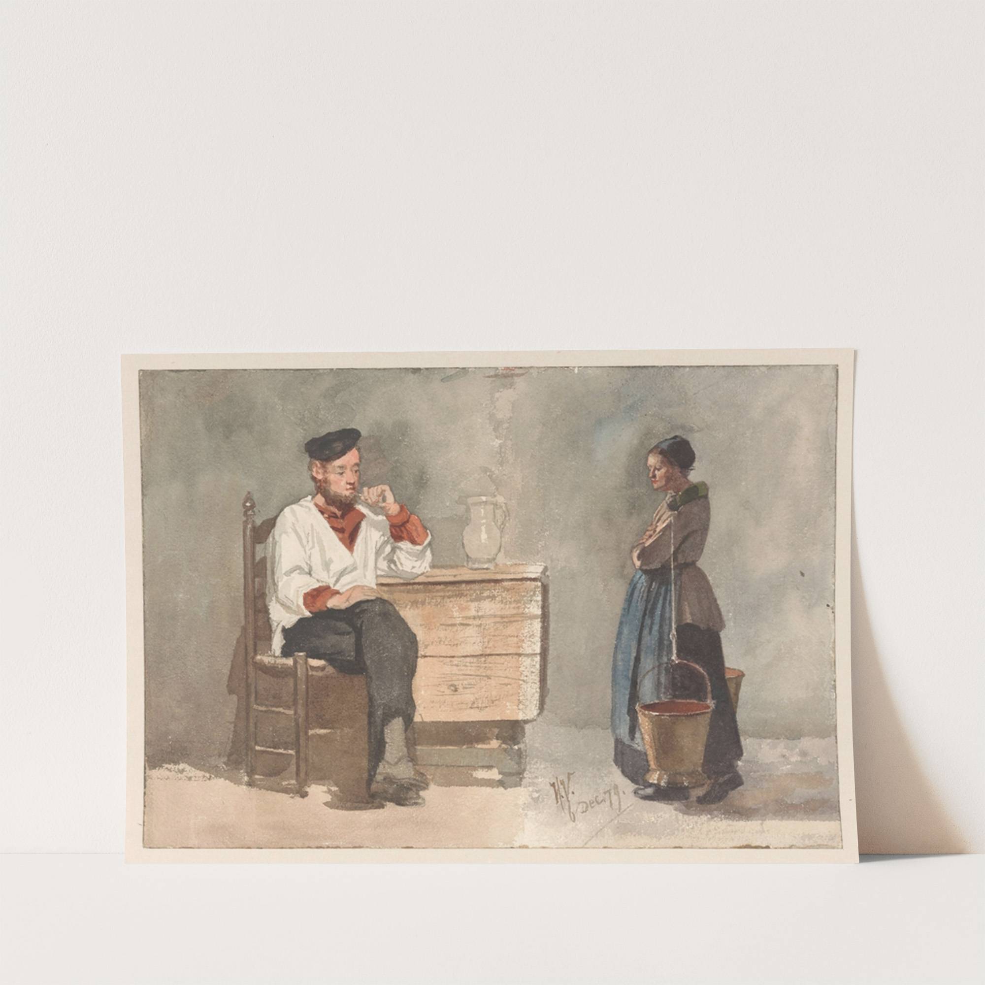 Rokende matroos, vrouw met juk en melkemmers by Hendrik Valkenburg - Wall Art Print