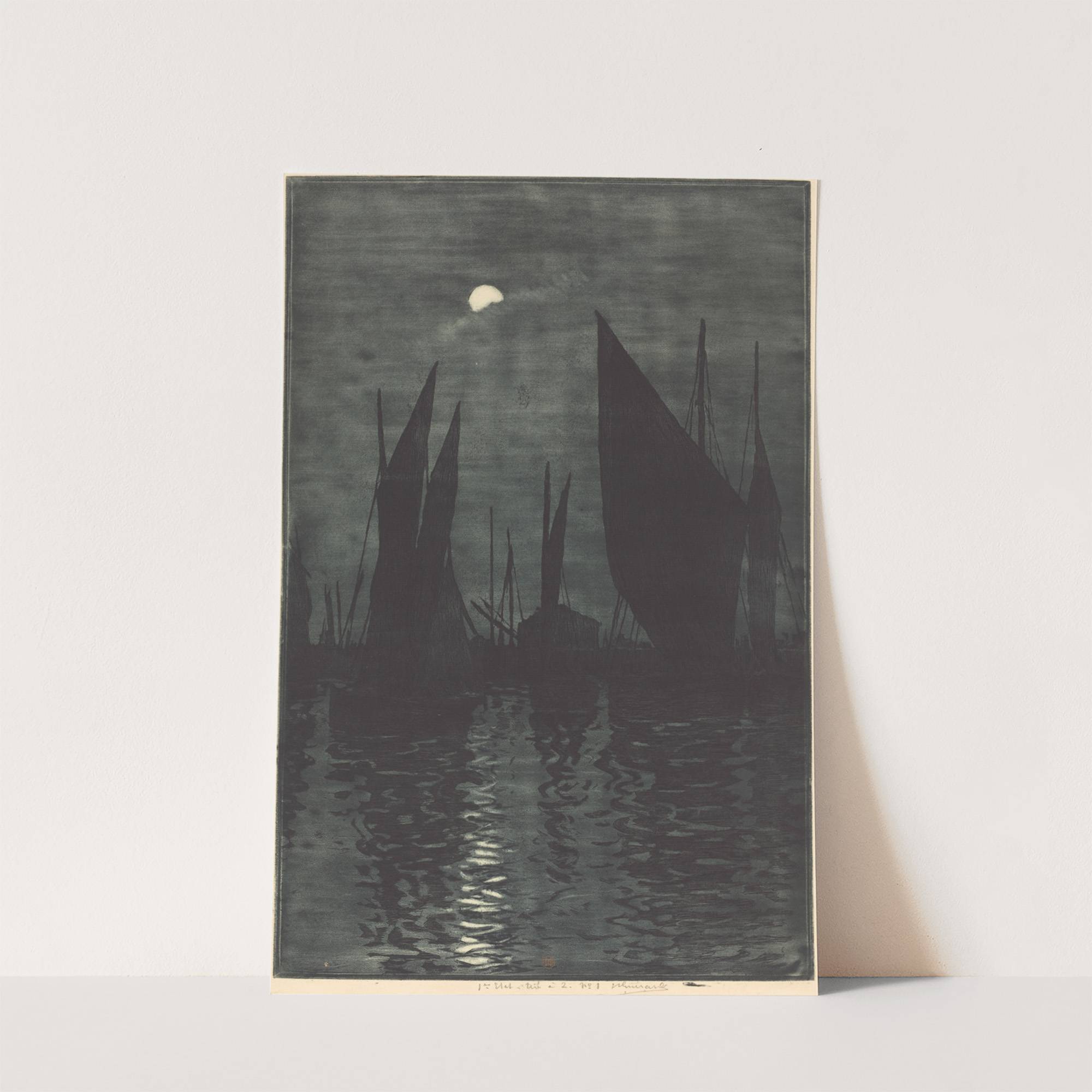 Moonlight in the Harbor at Dieppe (circa 1885) by Henri-Charles Guérard - Wall Art Print