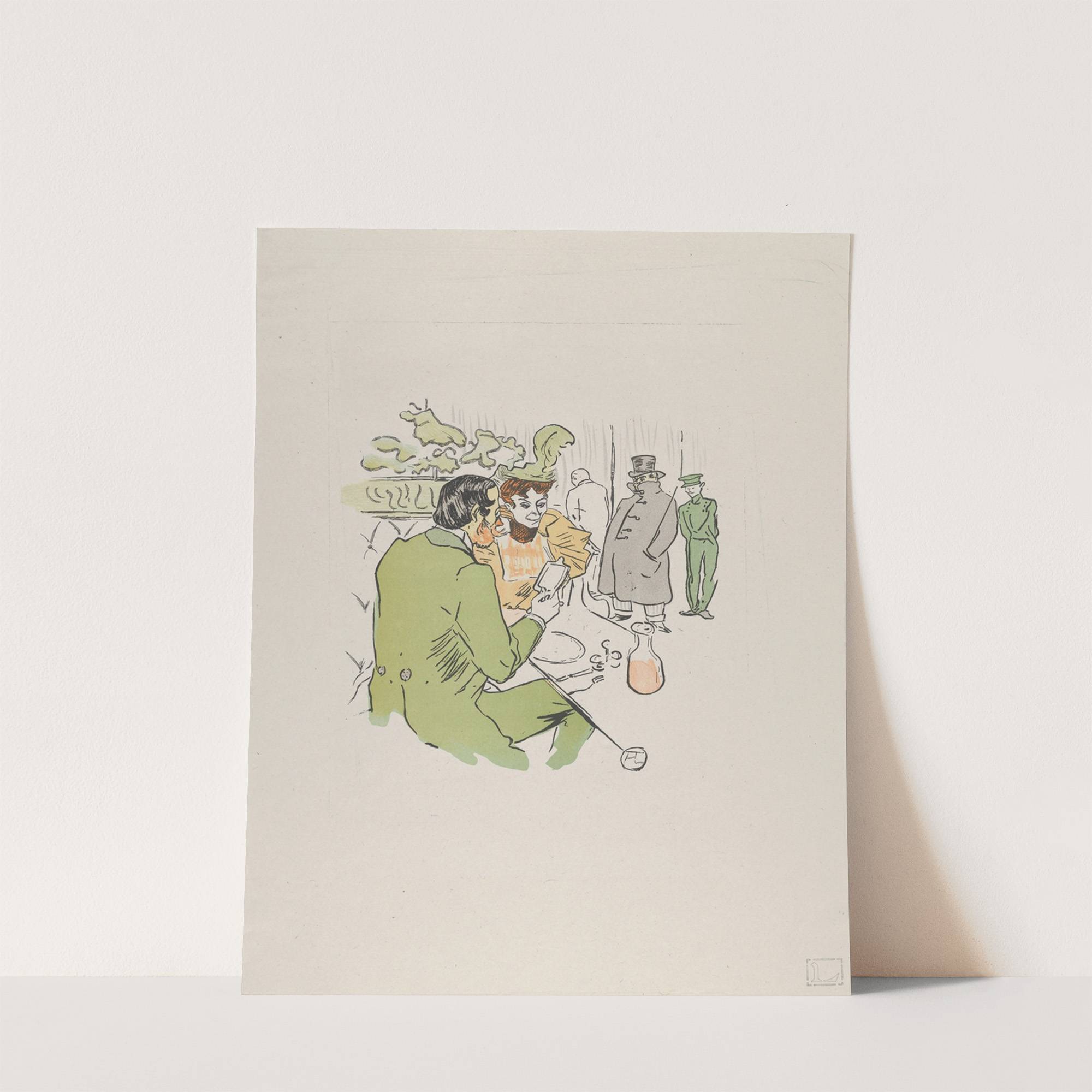 This art print, titled "prends sans qu'on te voie . . ." (from Le Rire, No. 129, 24 April 1897), is a charming and whimsical illustration by Jeanne, inspired by the style of Henri de Toulouse-Lautrec. The artwork features four...
