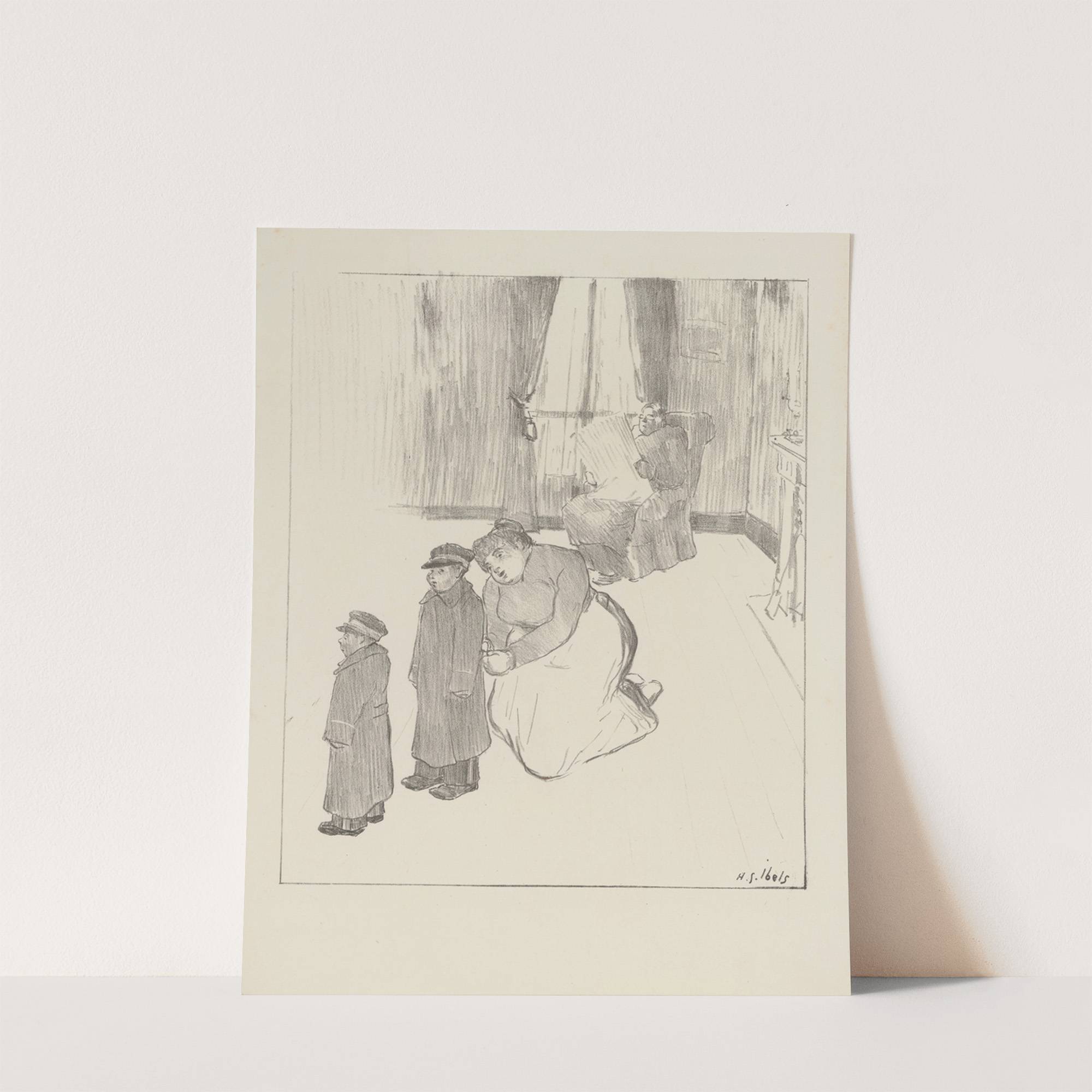 Intérieur avec homme lisant son journal, femme agenouillée auprès de deux garçonnets (1895-1900) by Henri-Gabriel Ibels - Wall Art Print
