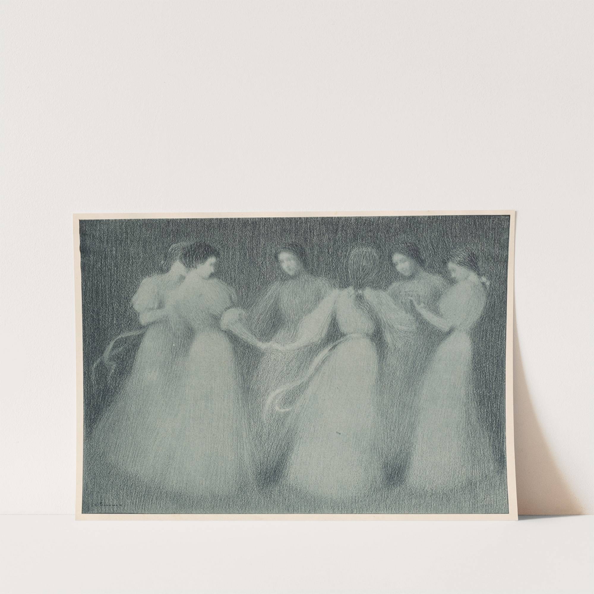 Experience the ethereal beauty of "La Ronde" by Henri Le Sidaner in this captivating art print. This piece showcases five graceful women standing close together, their figures softly blurring into each other to create an impressionistic effect that evokes a...