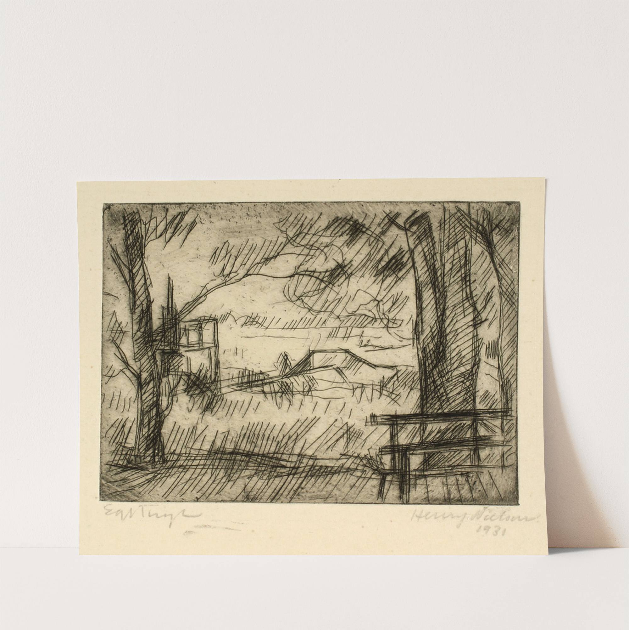 Udsigt over vand fra en beskygget sti med en bænk (1931) by Henry Nielsen - Wall Art Print