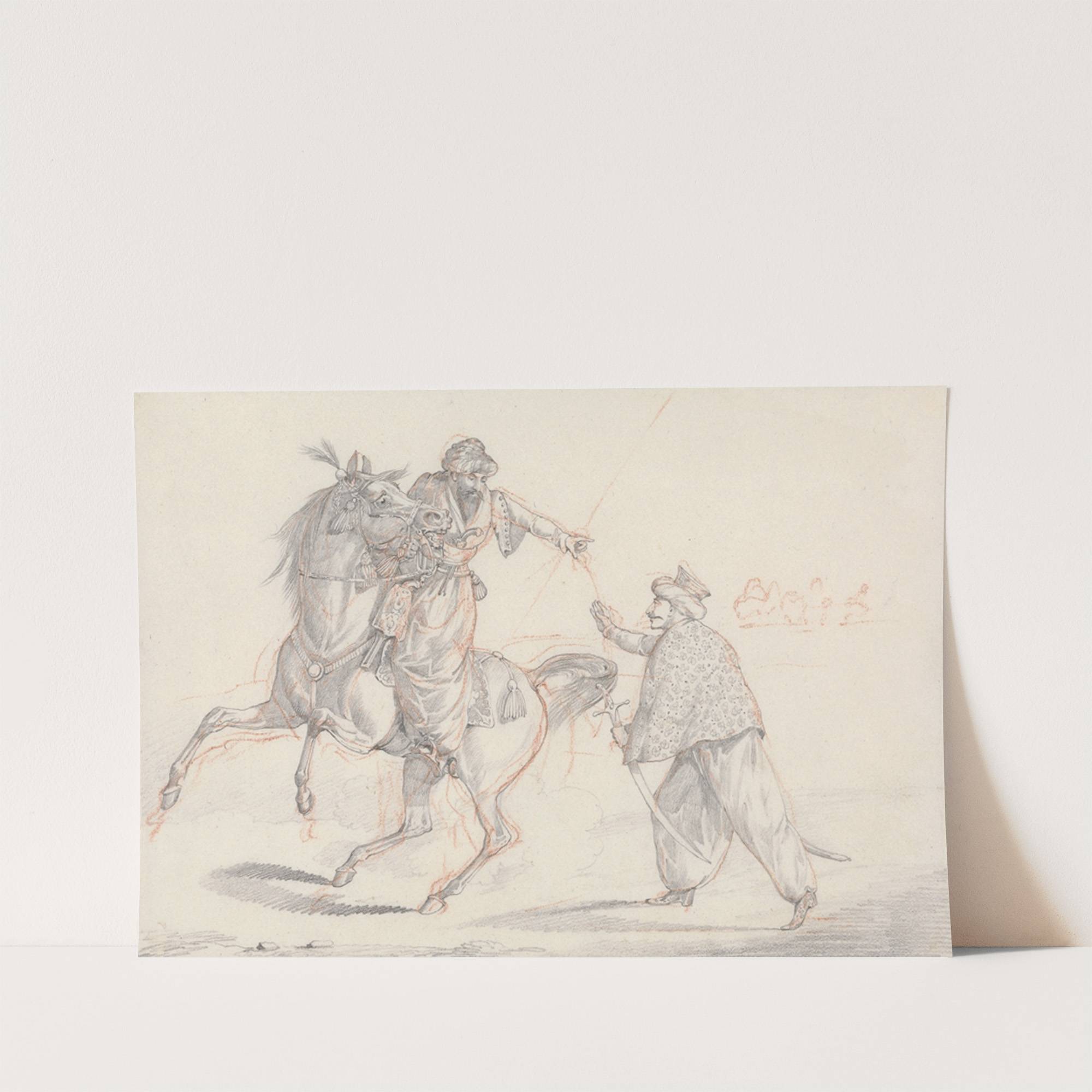 ‘Scraps’, no. 32: Two Mamelukes Talking, One Mounted by Henry Thomas Alken - Wall Art Print