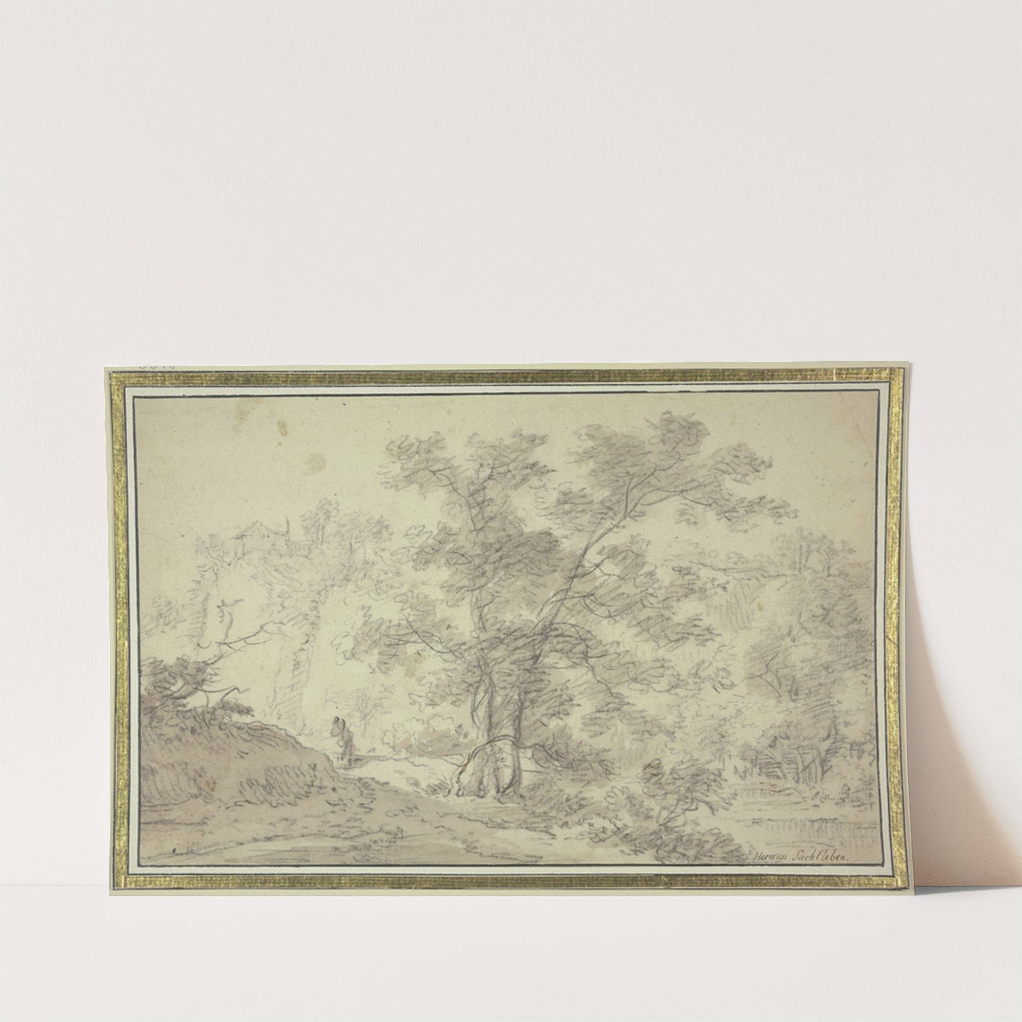 Waldpartie, links Häuser, rechts Wasser by Herman Saftleven III - Wall Art Print