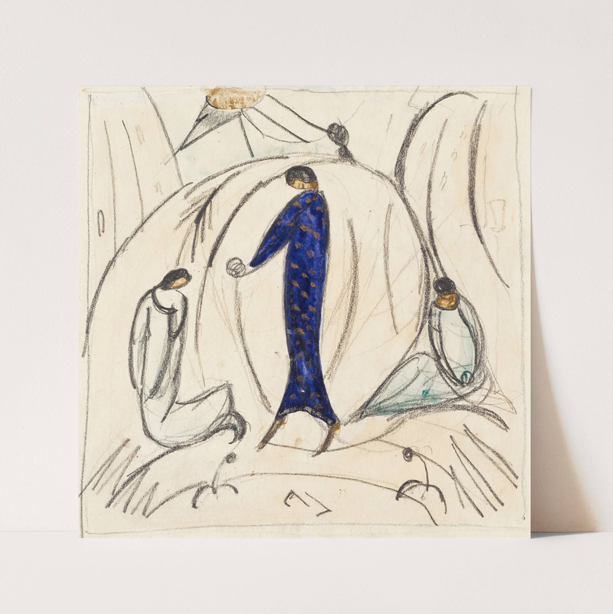 Frau in Blau mit zwei Begleitern by Hermann Stenner - Wall Art Print