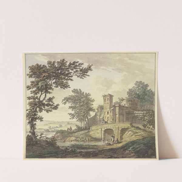 Bei einer Brücke und mehreren Gebäuden, im Wasser fünf badende Kinder by Hermanus Numan - Wall Art Print