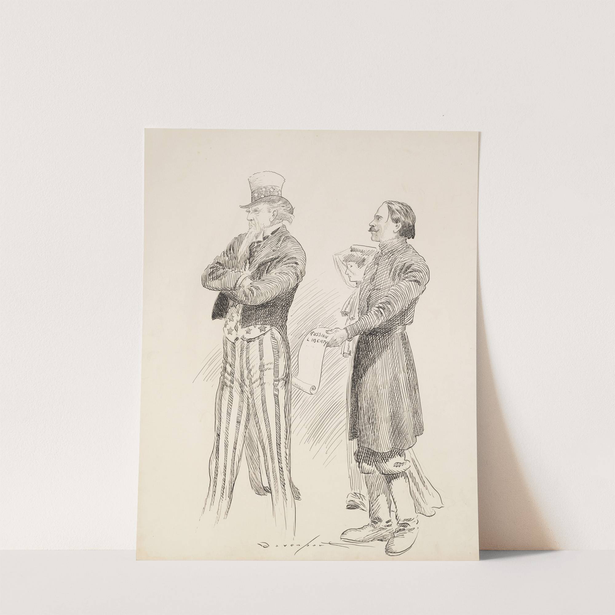 A man and woman try to give a scroll labeled ‘Russian Liberty’ to Uncle Sam, but he turns his back and will not take it. by Homer Davenport - Wall Art Print