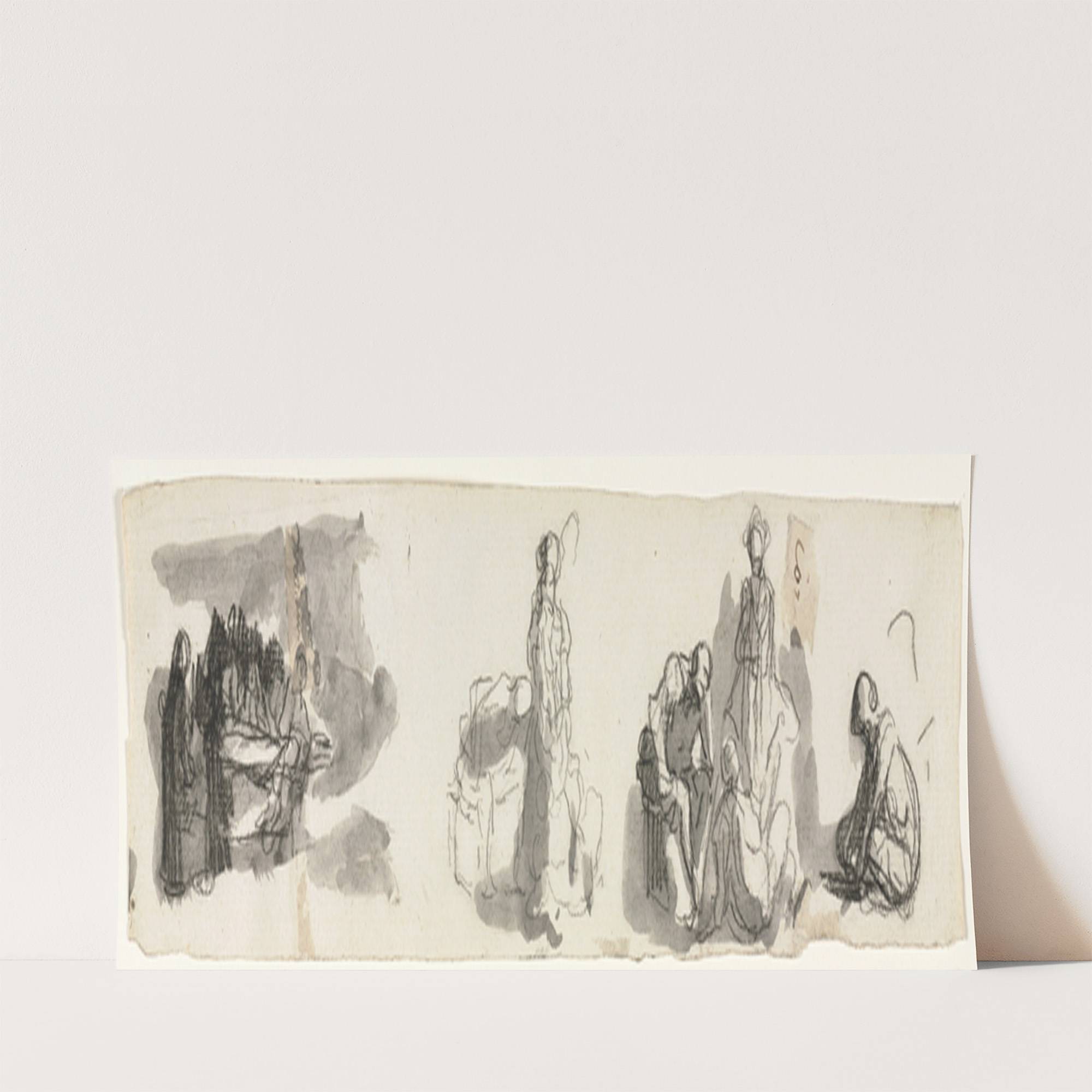 Sheet of Studies with a Group of Four Figures to the Right (1850–75) by Honoré Daumier - Wall Art Print