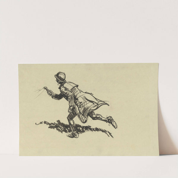 Running to a fox hole with raincoat over nude body, helmet and flashlight – Guadalcanal by Howard Brodie - Wall Art Print