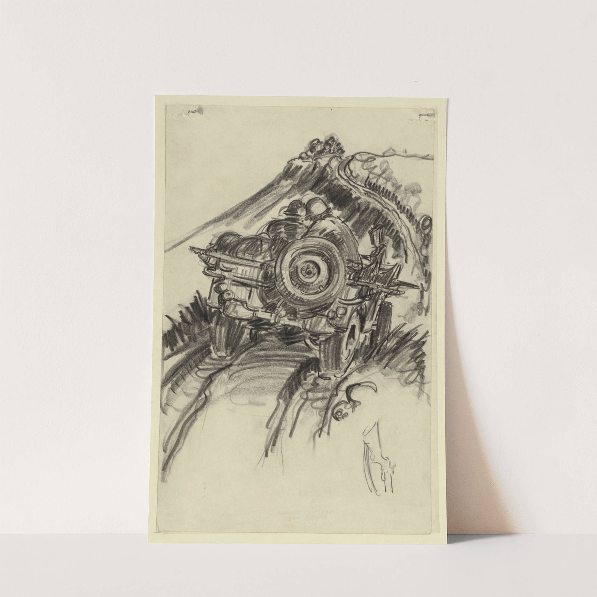Taking a ‘K.I.A.’ down a jeep trail from Mt. Aestin [i.e. Mt. Austen] Guadalcanal by Howard Brodie - Wall Art Print