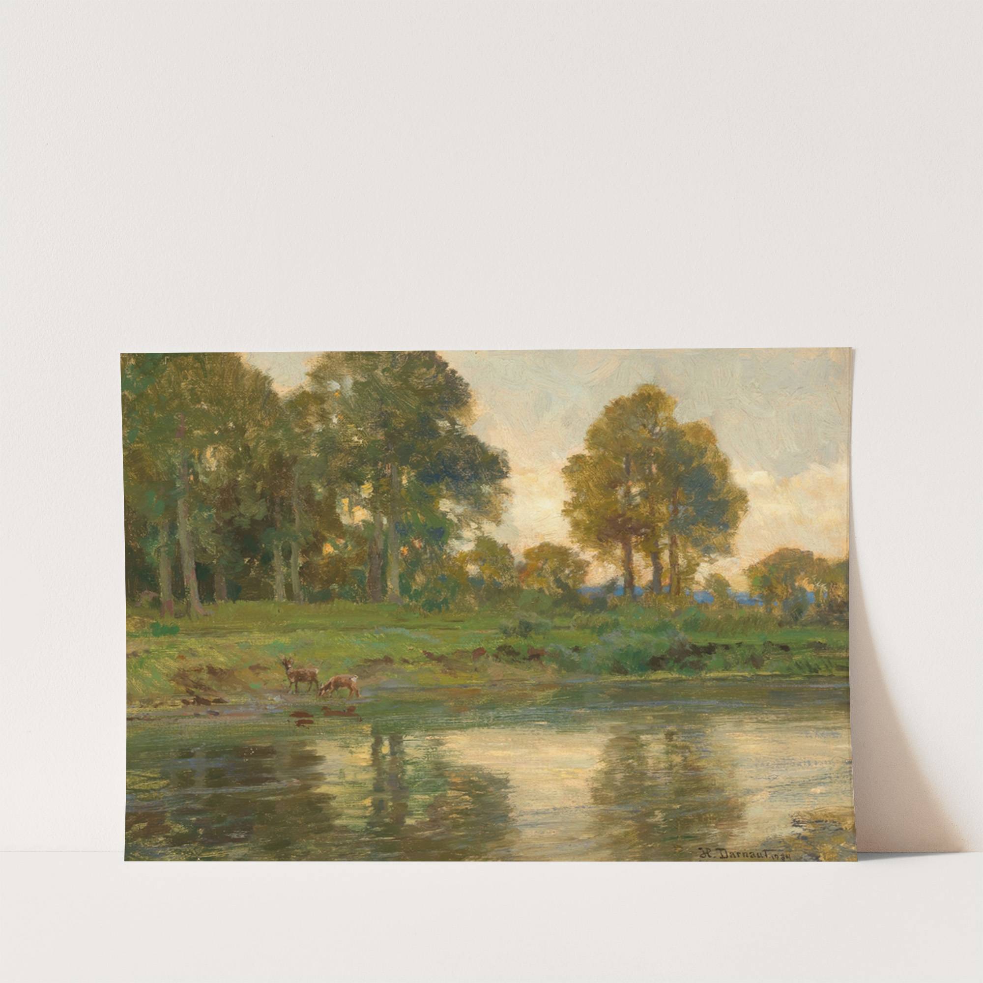 Red Deer by a Pond at Sunset by Hugo Darnaut - Wall Art Print