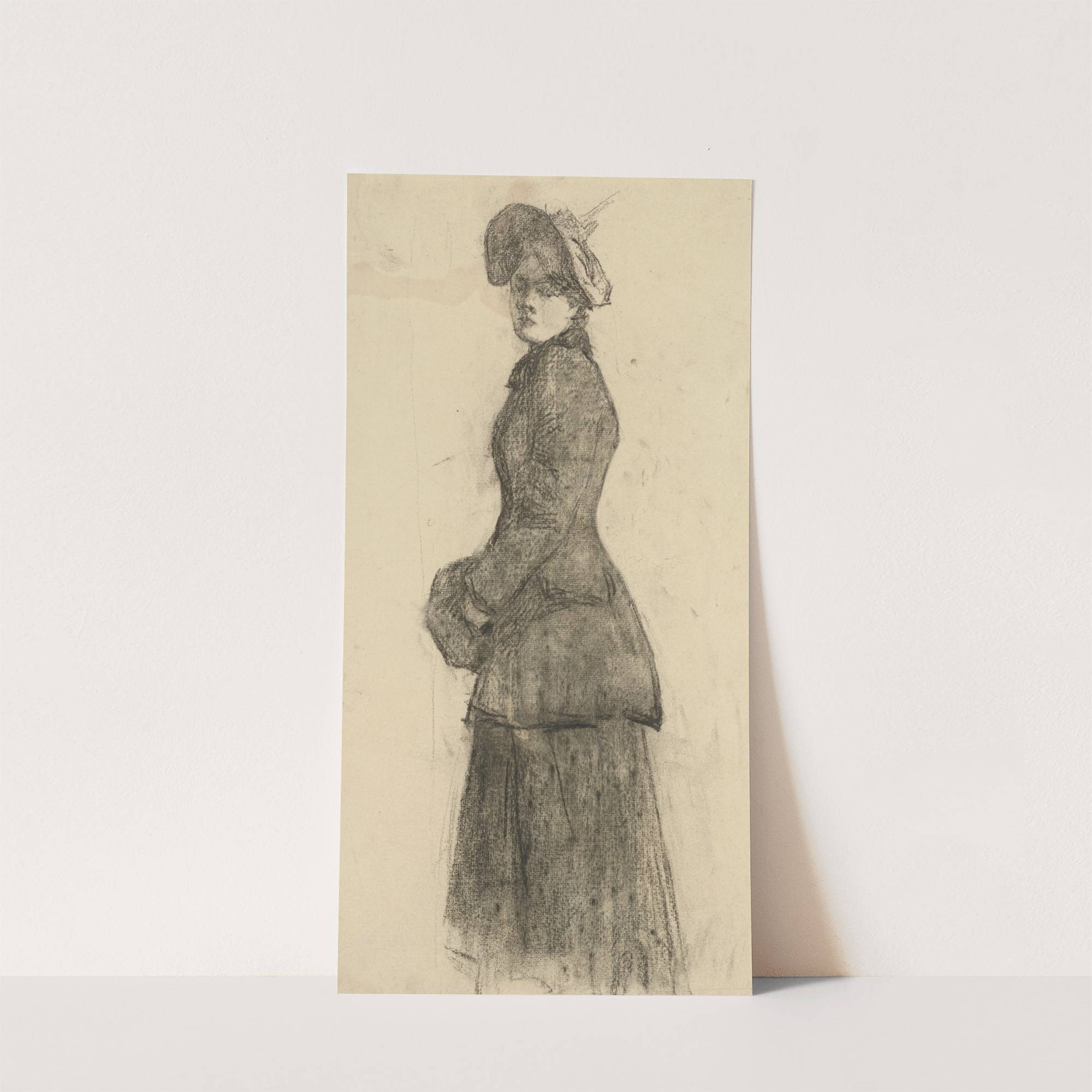 This elegant black-and-white sketch captures the grace of a refined woman in early 20th-century attire. The figure is beautifully rendered using soft pencil strokes, creating a delicate and timeless atmosphere. She stands with an air of poise and confidence, her...