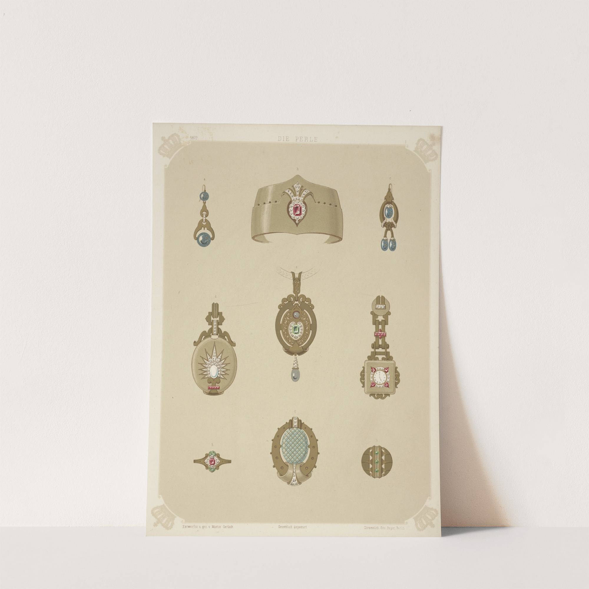 Seven Designs For Jewelry, Including Bracelets, Earrings, And Necklace With Pink Pearls. by Martin Gerlach - Wall Art Print