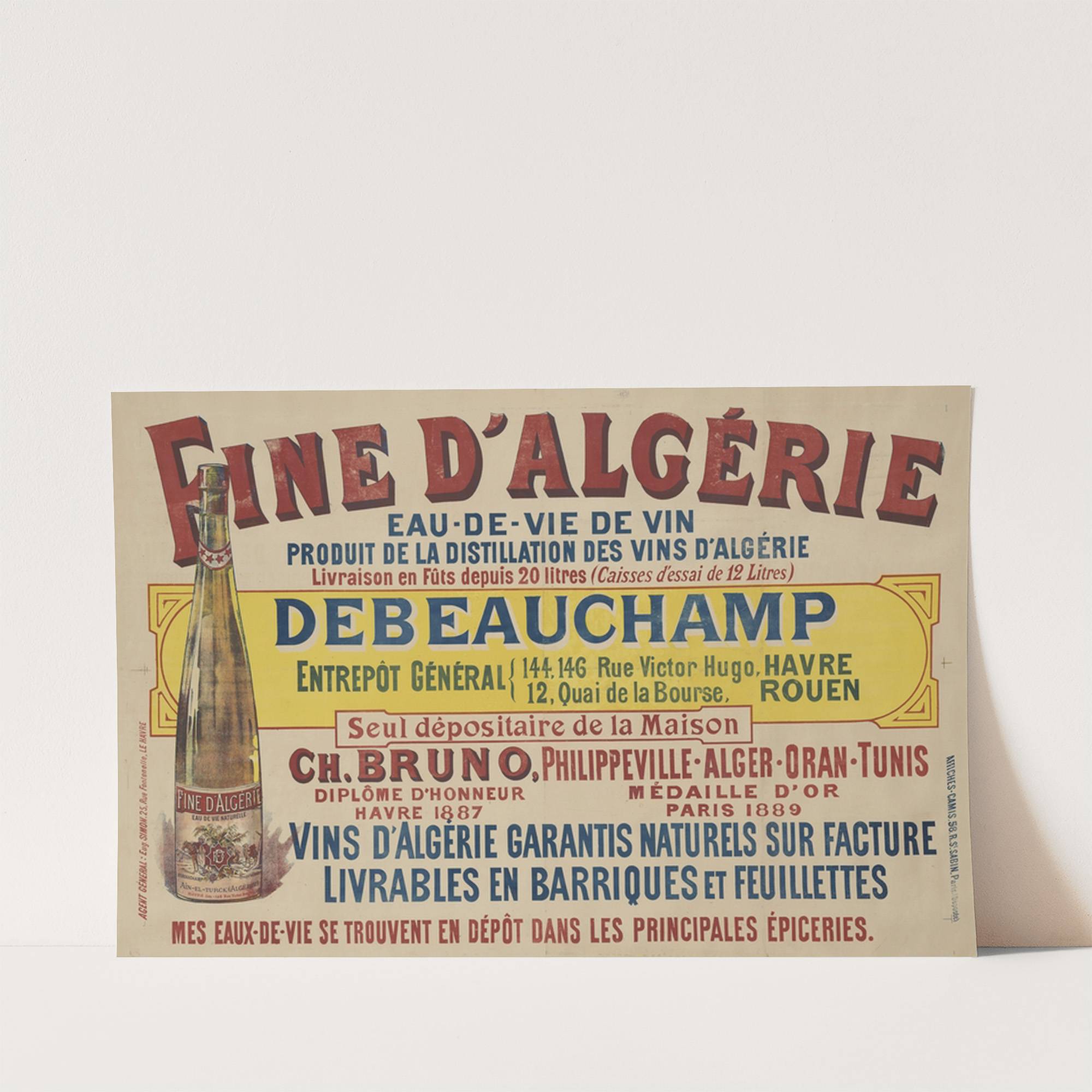 Fine d’Algérie, eau-de-vie de vin. Produit de la distillation des vins d’Algérie. Debeauchamp (1892) by Imp. Camis - Wall Art Print