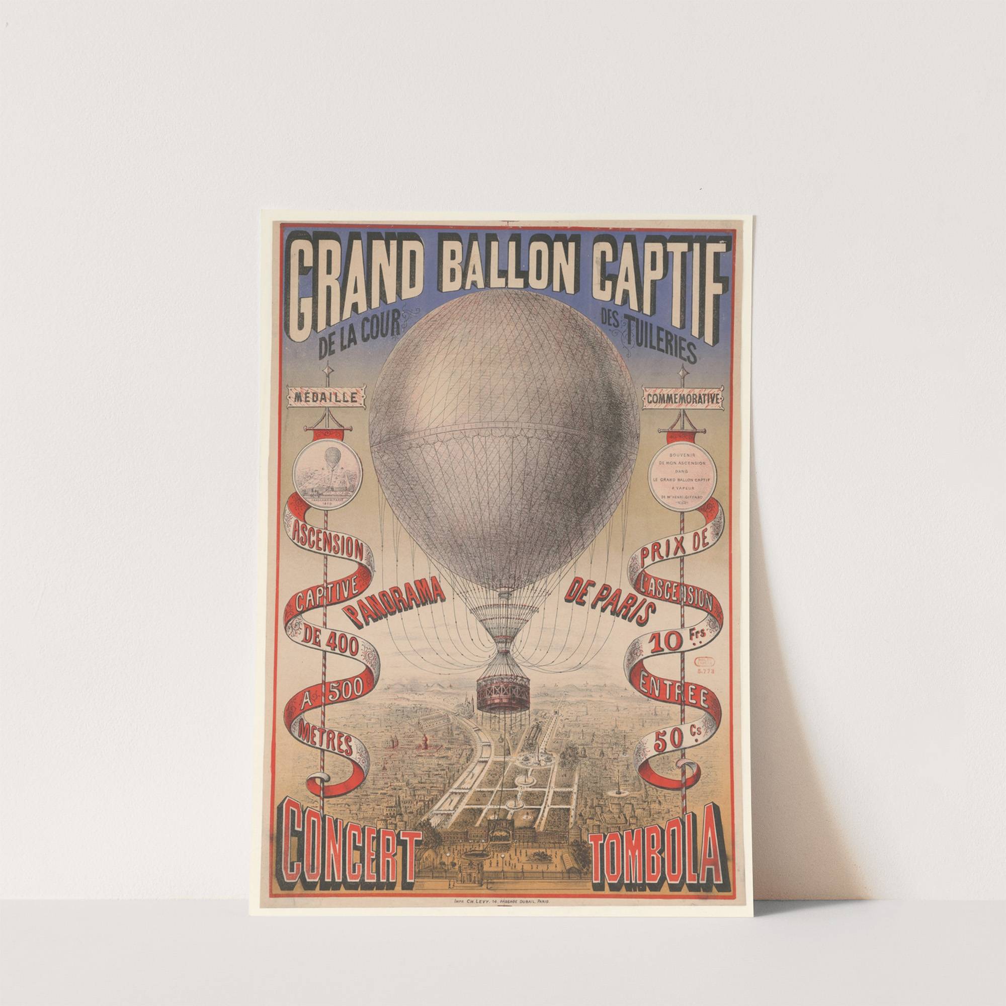 Panorama de Paris. Vue de la nacelle du Grand Ballon captif de la Cour des Tuileries (1879) by Imp. Emile Lévy - Wall Art Print