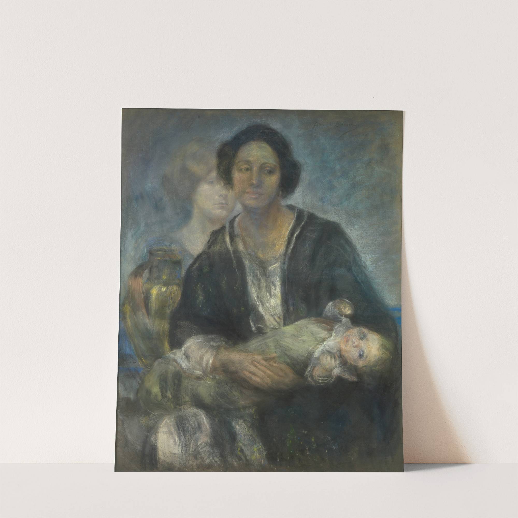 This painting, "Italian Woman with Child" by Alice Pike Barney, is a striking depiction of maternal tenderness. The artist employs a soft, impressionistic style with fluid brushstrokes and a muted color palette dominated by blues, greens, and earthy tones. At...