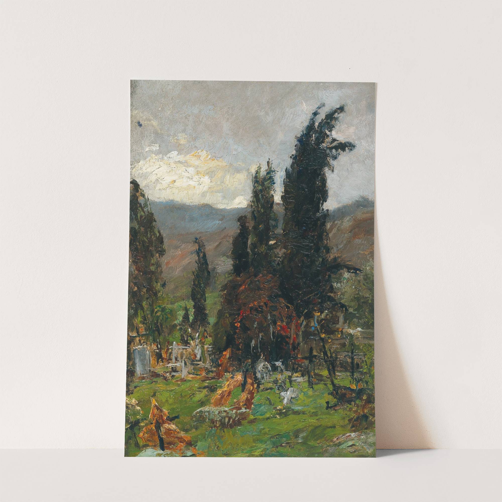 View of a cemetery at dusk by Olga Wisinger-Florian - Wall Art Print