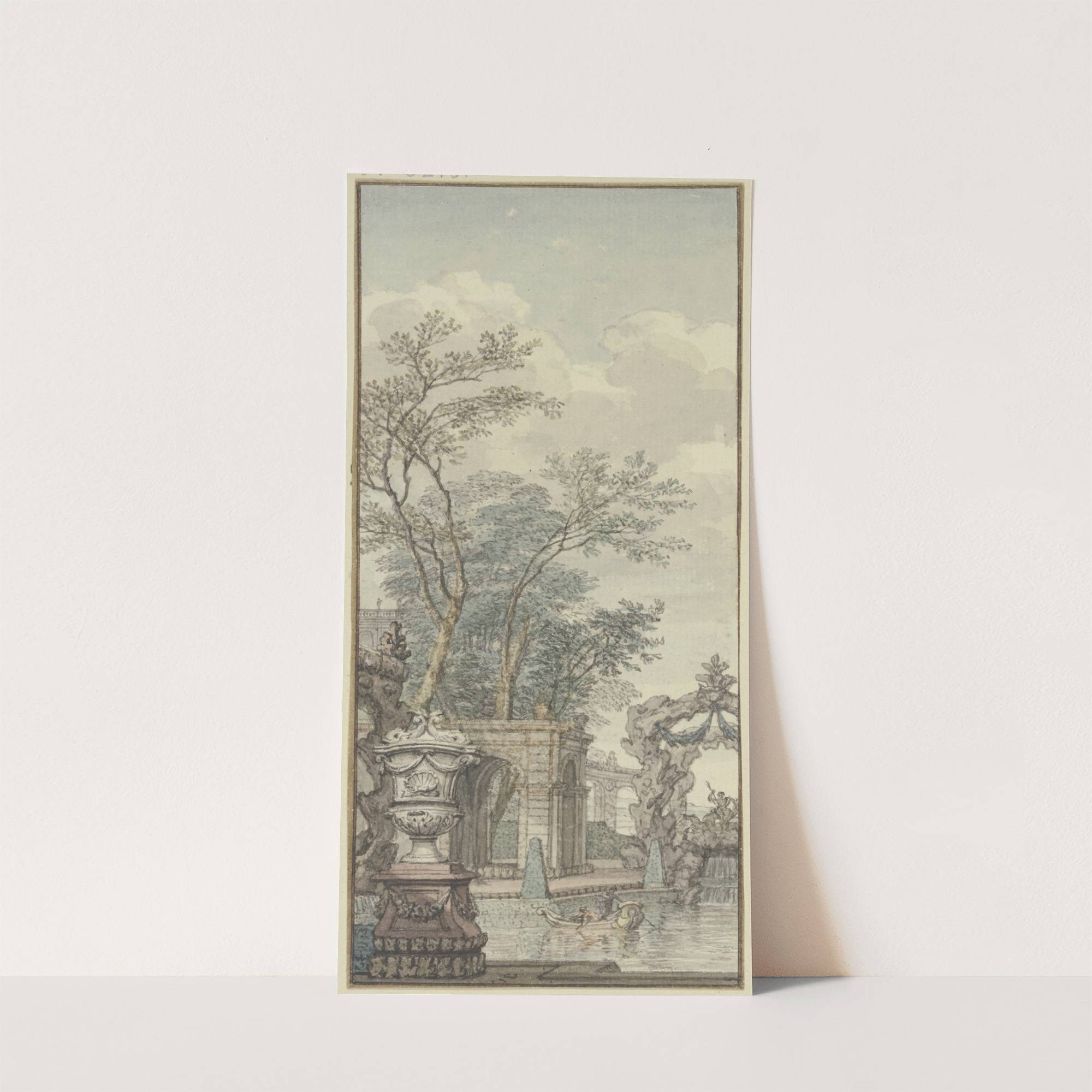 Panneau, Parkansicht mit Wasserwerken und künstlichem Felsen by Isaac de Moucheron - Wall Art Print