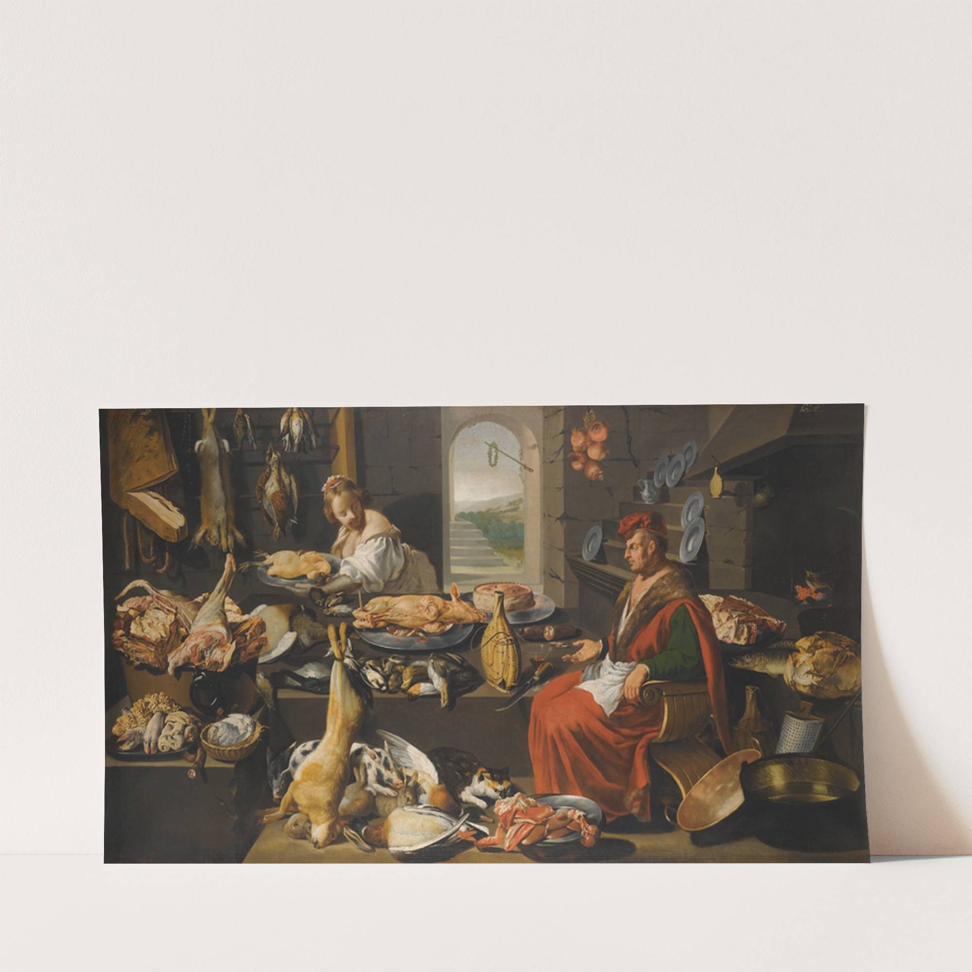 A Kitchen Interior With A Chef And His Assistant Surrounded By Meats And Cooking Instruments, A Fireplace To The Right (17th Century) by Italo-Flemish School - Wall Art Print