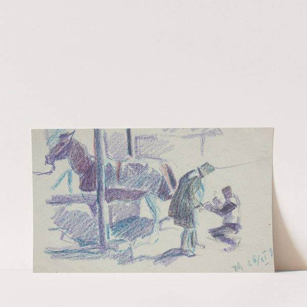 Dwaj żołnierze Legionu Ukraińskich Strzelców Siczowych (1914-1920) podkuwający konia (1914) by Ivan Ivanec - Wall Art Print