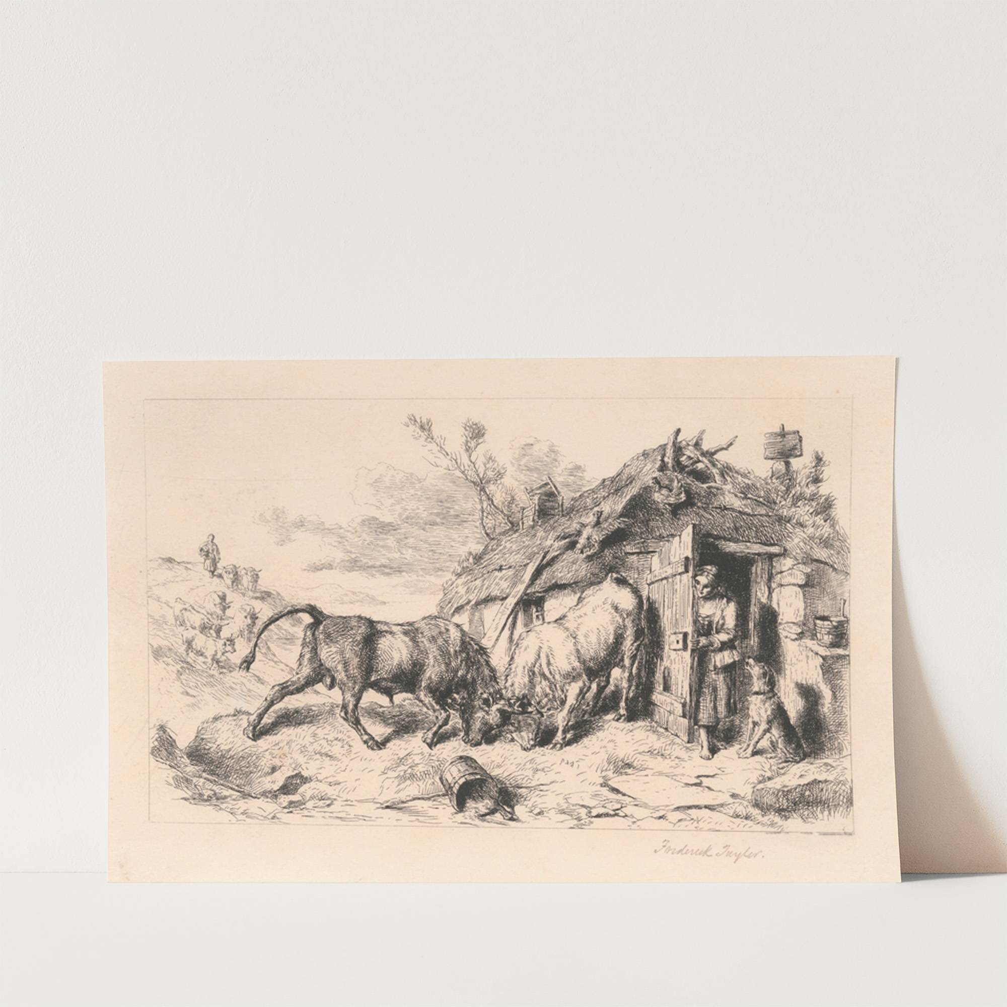 Two Bulls fighting by a Cottage by John Frederick Tayler - Wall Art Print