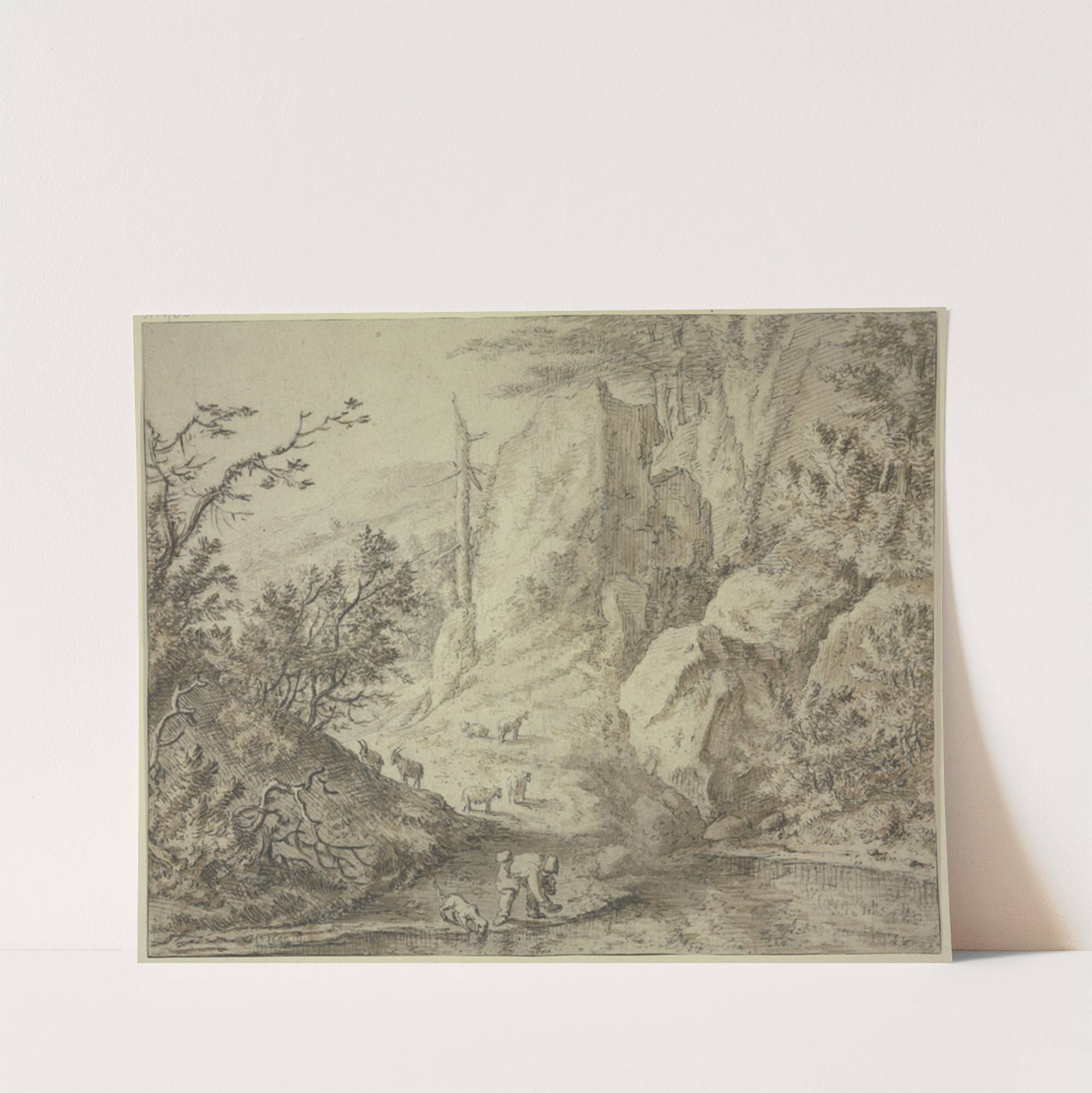 Wasserschöpfender Hirte mit seiner Ziegenherde by Jacob Happ - Wall Art Print