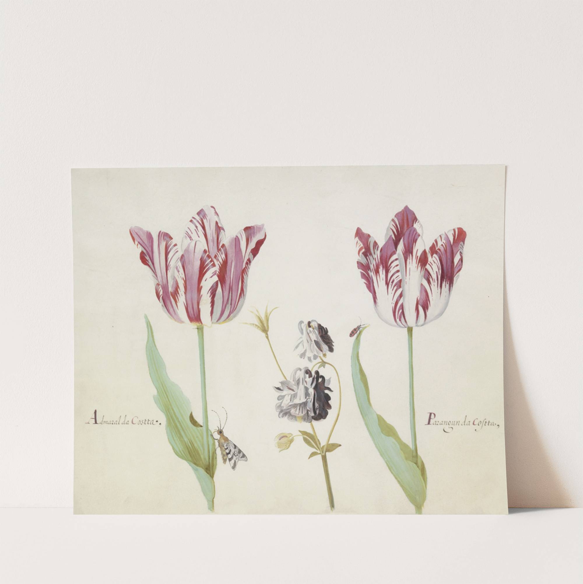 Twee tulpen met akelei, nachtvlinder en kever Admaral da Costta Parangun da Costta (1637) by Jacob Marrel - Wall Art Print