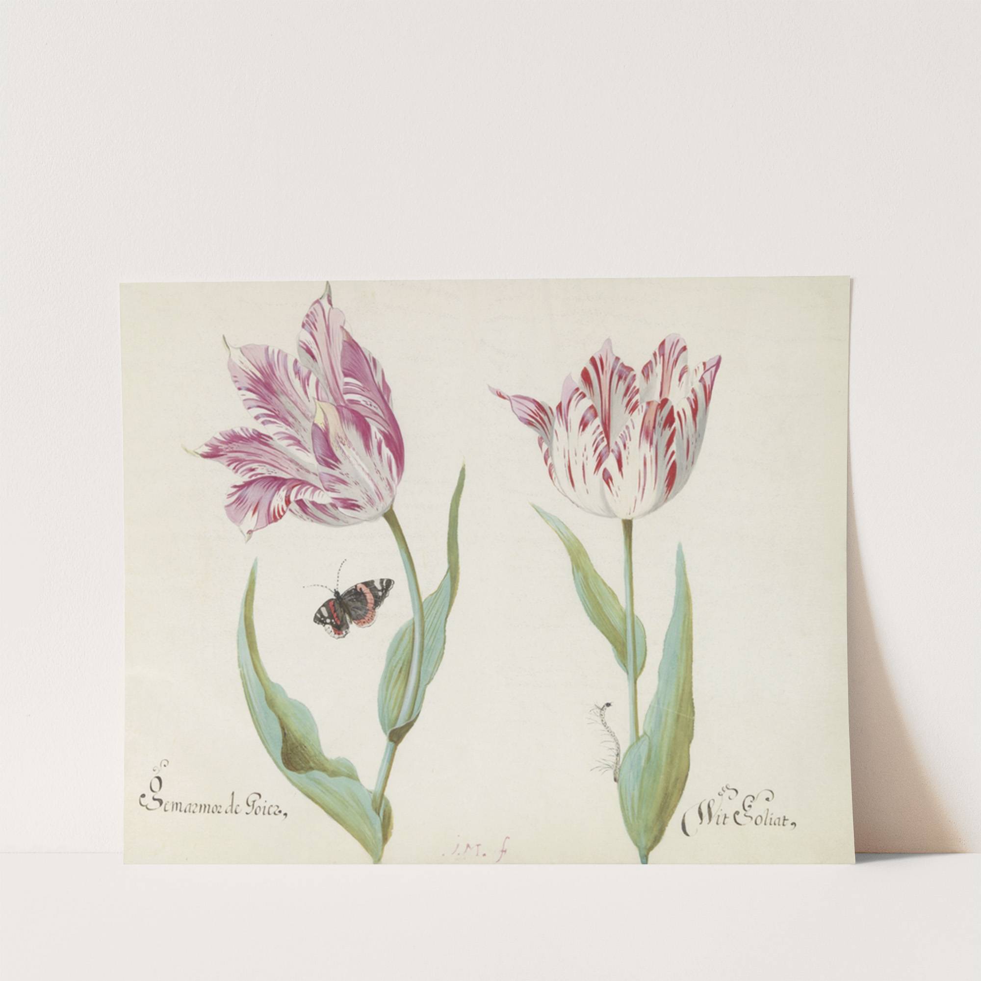 Twee tulpen met atalanta en rups Gemarmor de Goier Wit Goliat (1637) by Jacob Marrel - Wall Art Print