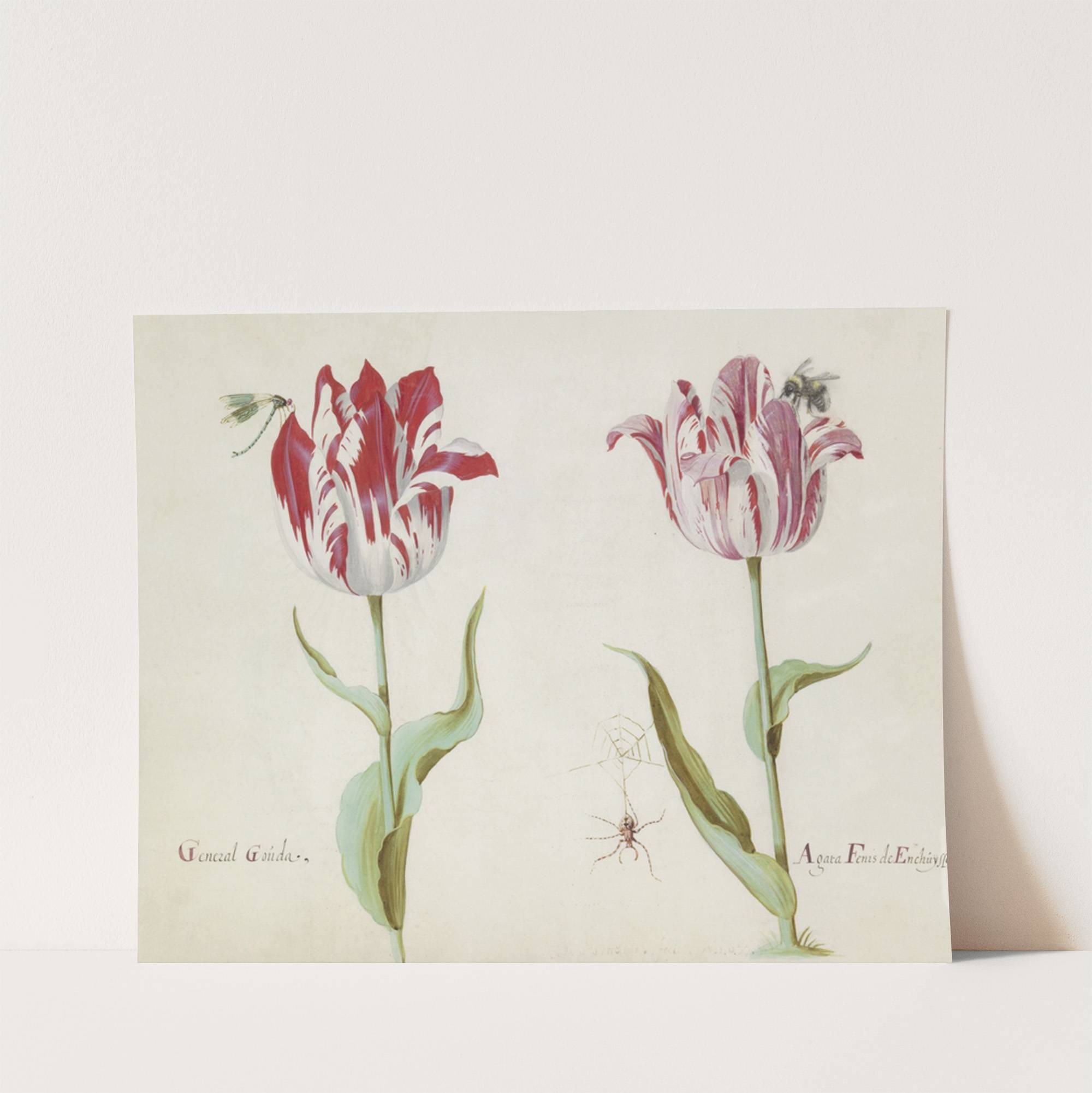 Twee tulpen met libelle, spin en hommel General Gouda Agata Fenis de Enchuysse (1637) by Jacob Marrel - Wall Art Print