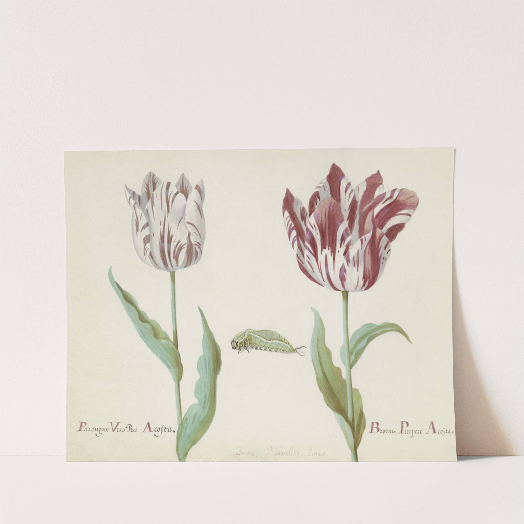 Twee tulpen met rups Parangun Vizo Rei Acosta Broene Purper Acosta (1637) by Jacob Marrel - Wall Art Print