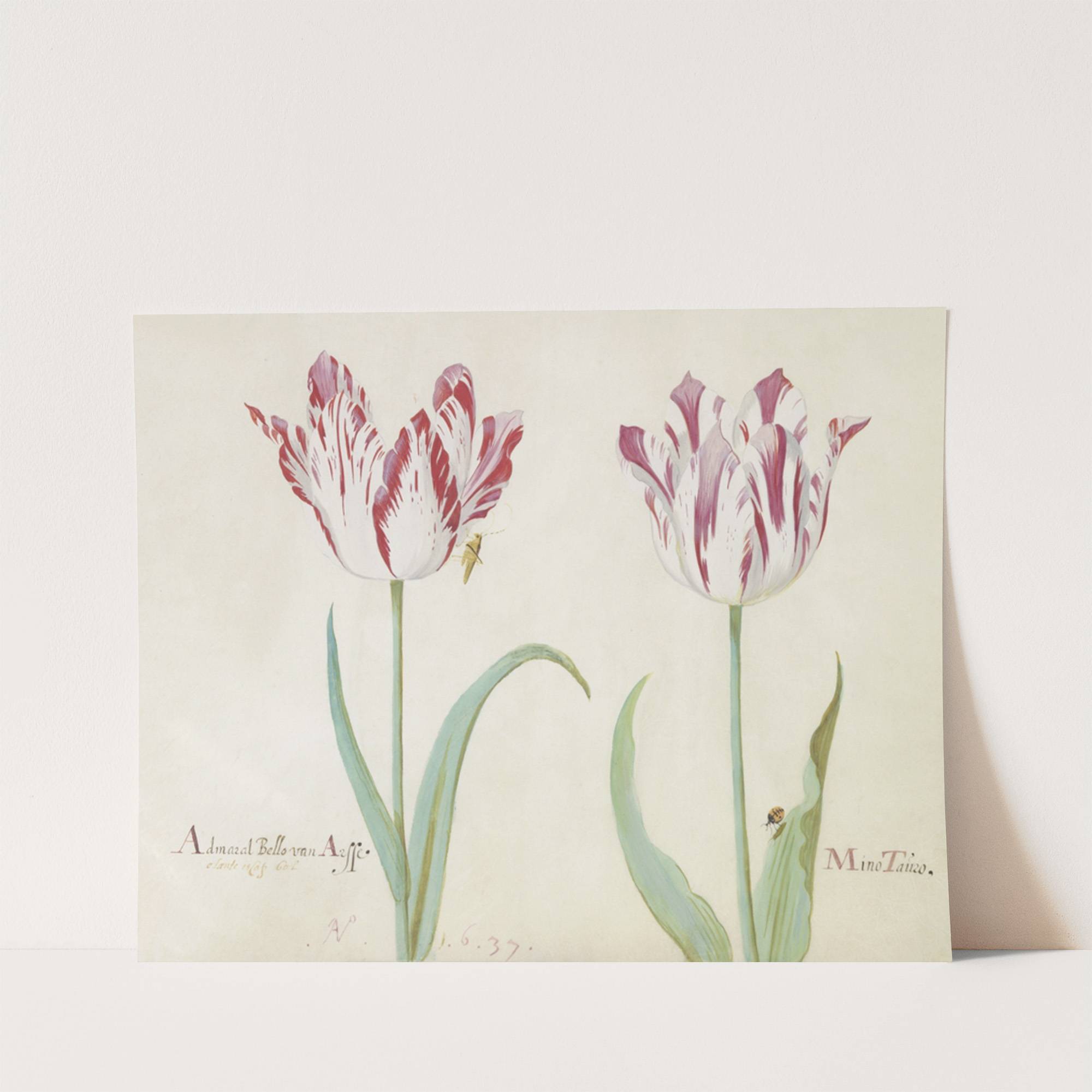 Twee tulpen met sprinkhaan en lieveheersbeestje Admaral Bello van Arsse Mino Tauro (1637) by Jacob Marrel - Wall Art Print