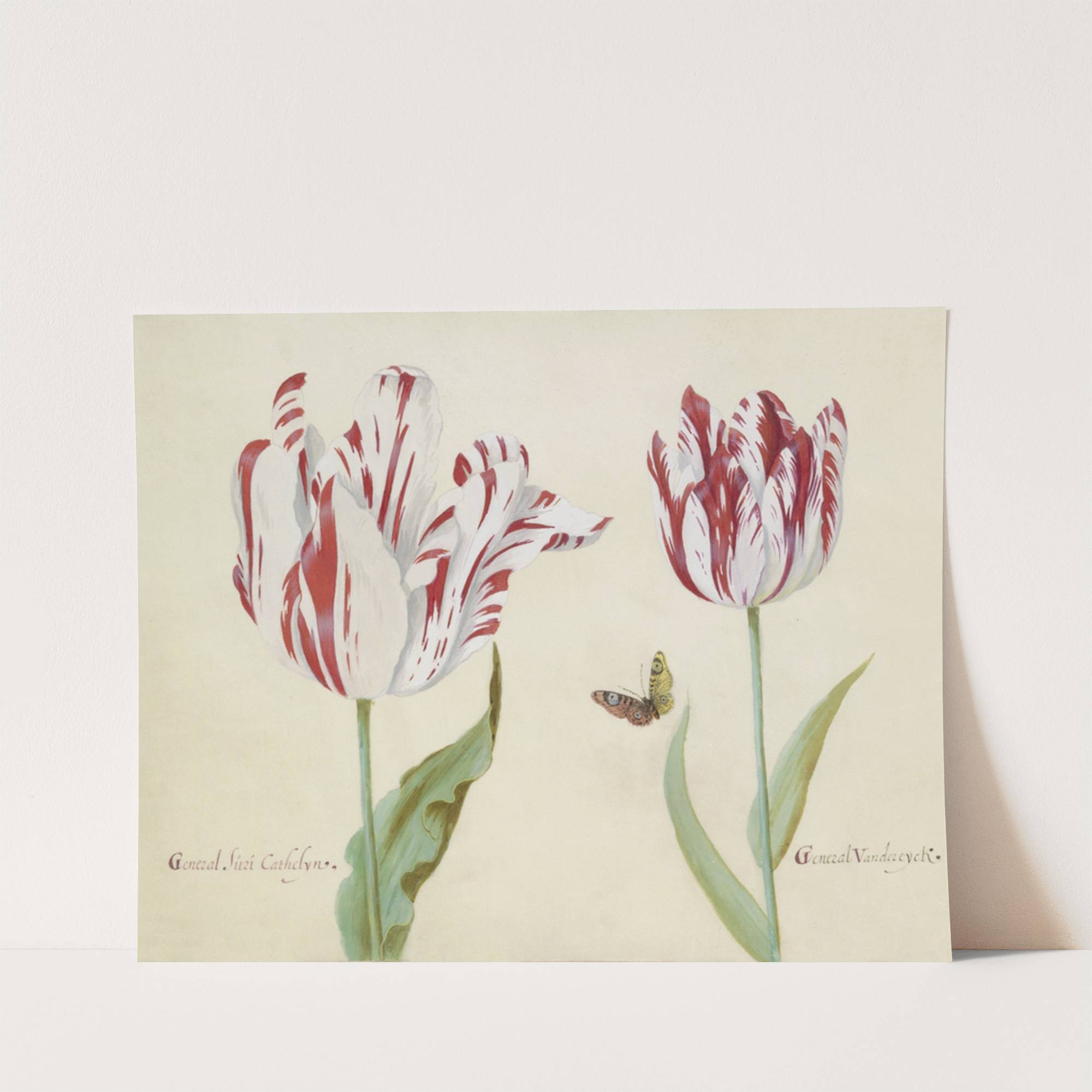 Twee tulpen met vlinder General suri Cathelyn General Van der eyck (1637) by Jacob Marrel - Wall Art Print