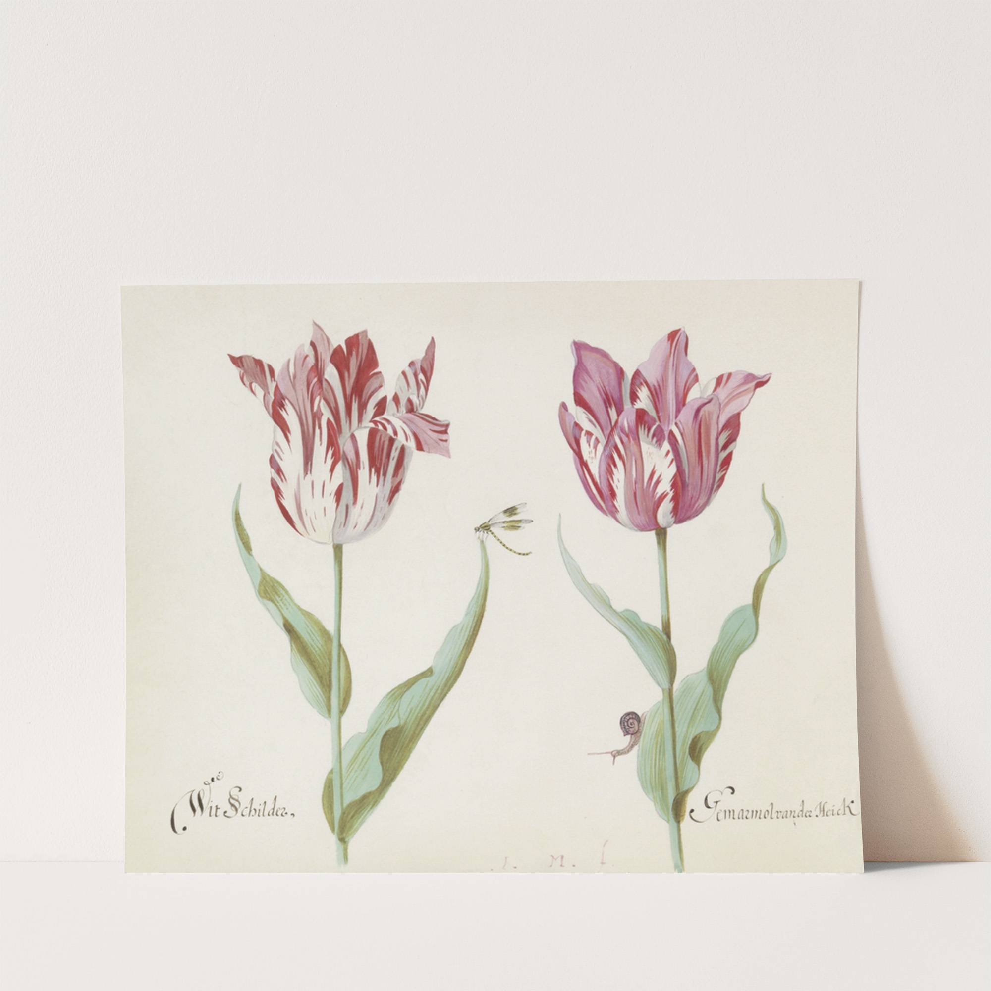Twee tulpen met waterjuffer en slak Wit Schilder Germarmol van der Heick (1637) by Jacob Marrel - Wall Art Print