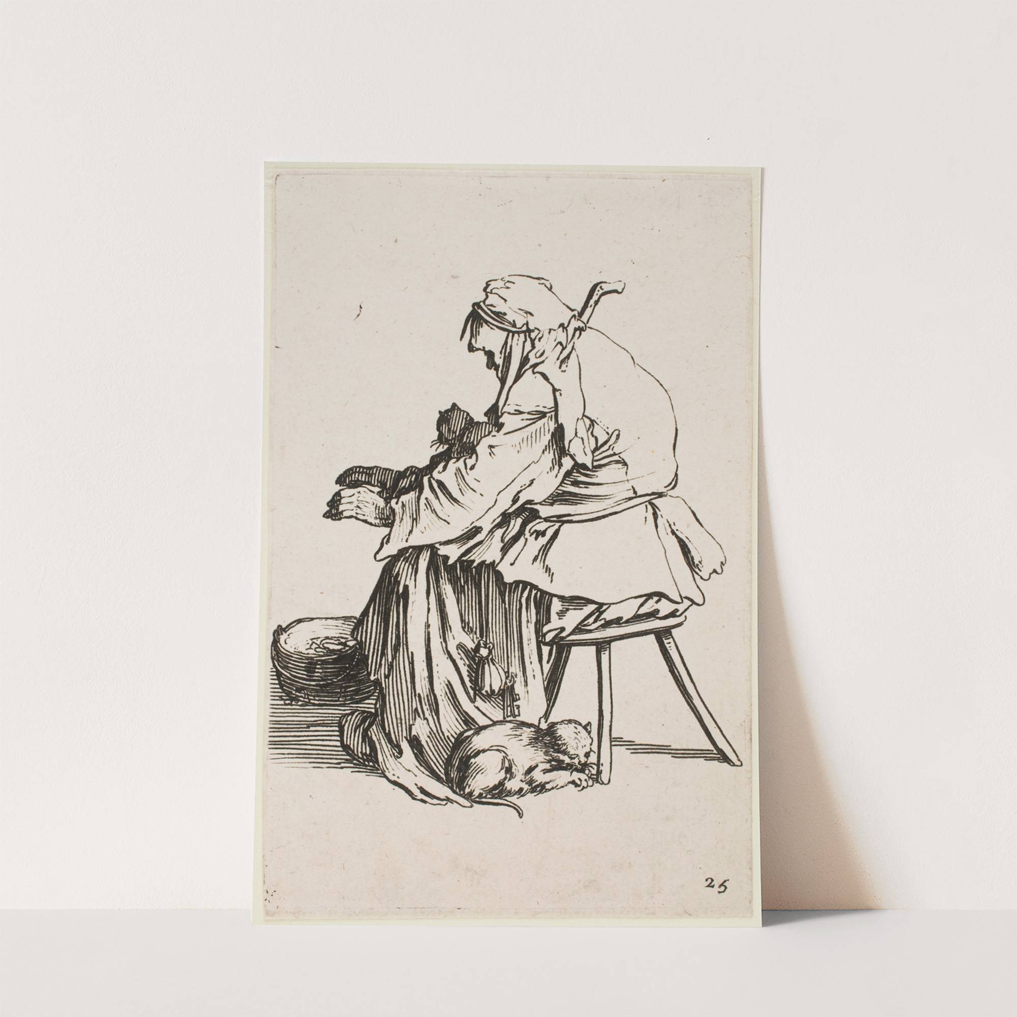 Old Lady with Cats (1622) by Jacques Callot - Wall Art Print