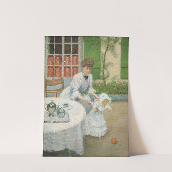 Junge Mutter mit ballspielendem Mädchen by Jacques Wély - Wall Art Print