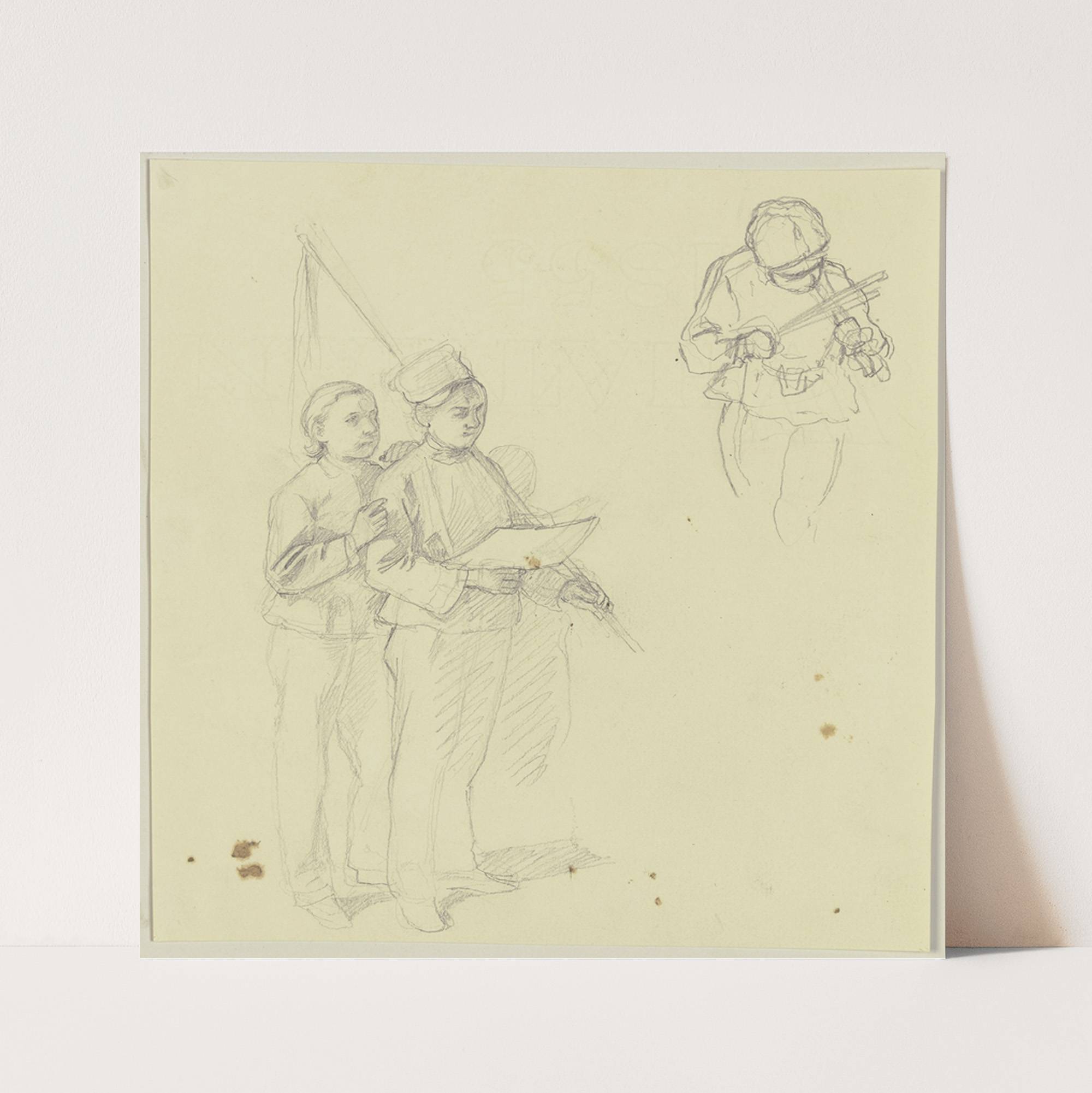 Bauernmädchen mit Garbe, die Augen vor der Sonne schirmend by Jakob Becker - Wall Art Print