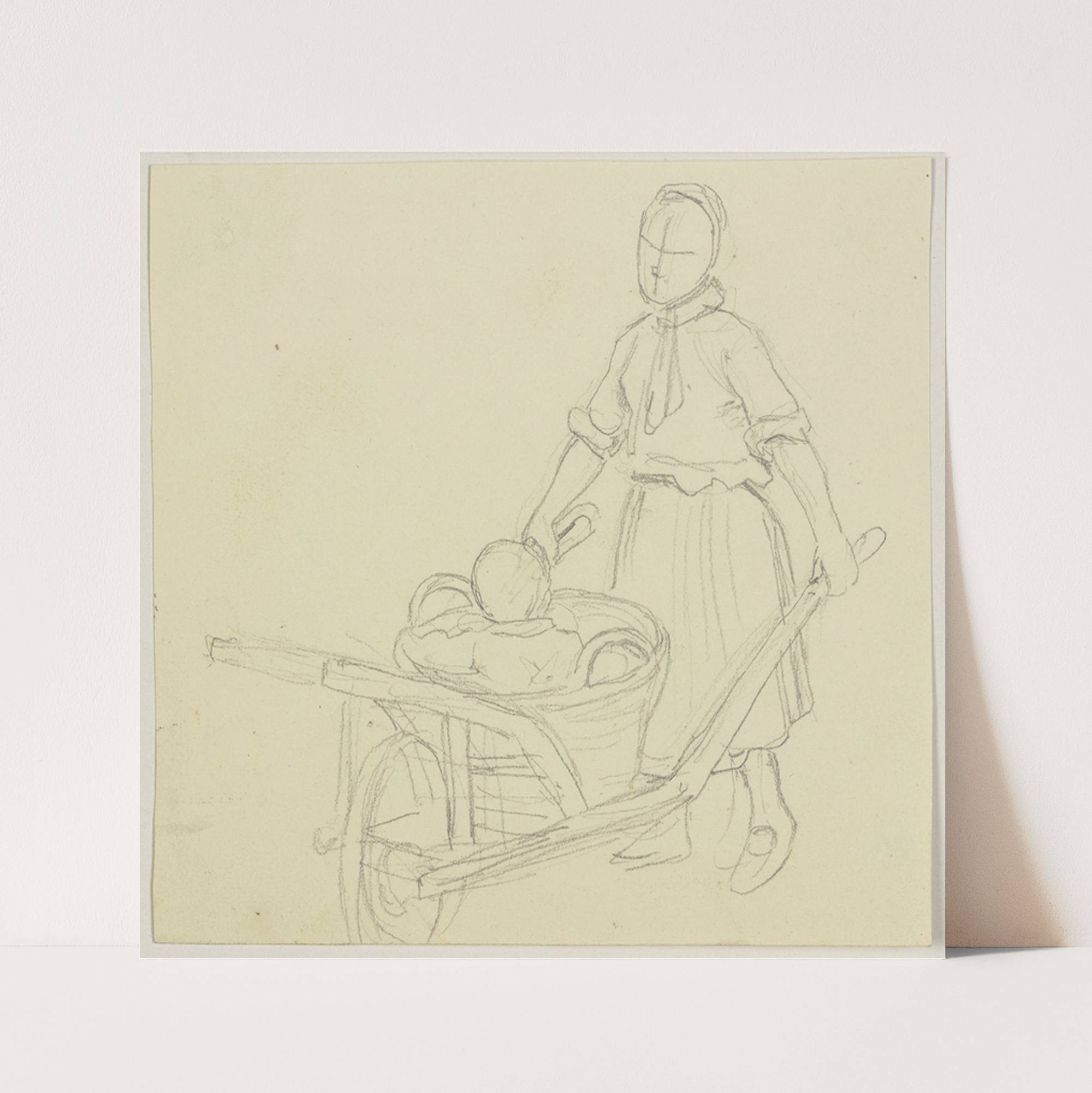 Bauernmädchen mit Schubkarren by Jakob Becker - Wall Art Print